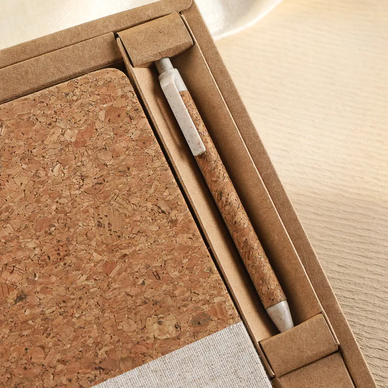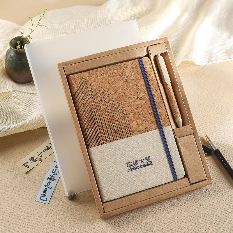 Wooden cork cover notebooks and ecofriendly pen set gift box Wholesale Customizable