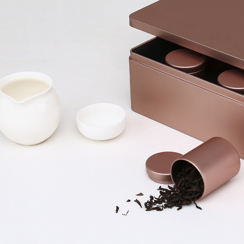 Elegant Tin Tron Gold Metal Box for Gift Packaging Tea Box With 6 Tin Cans