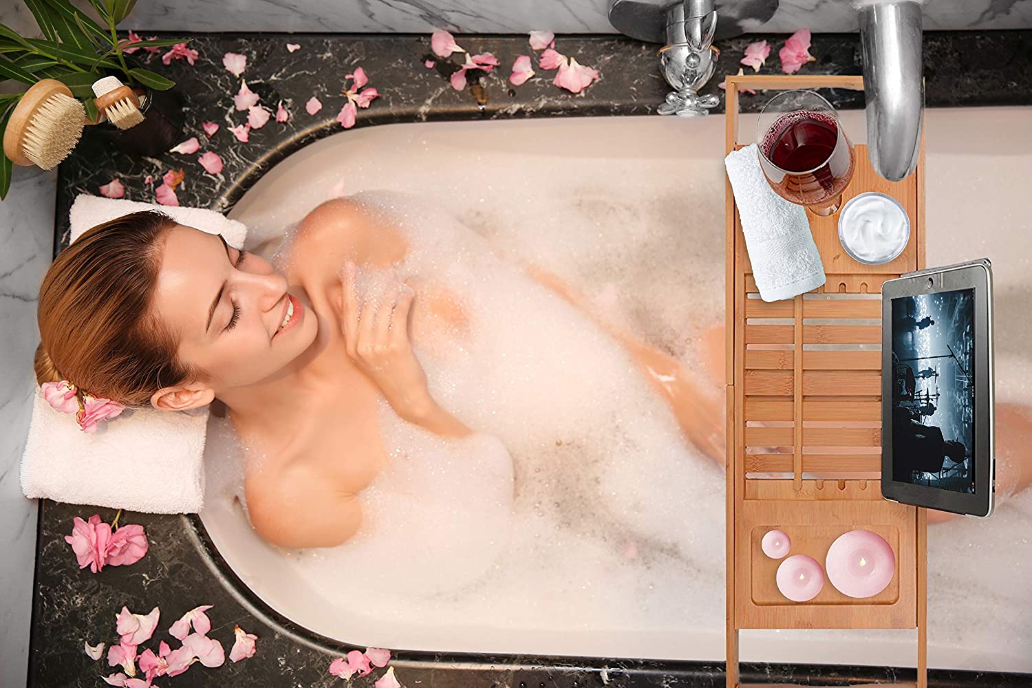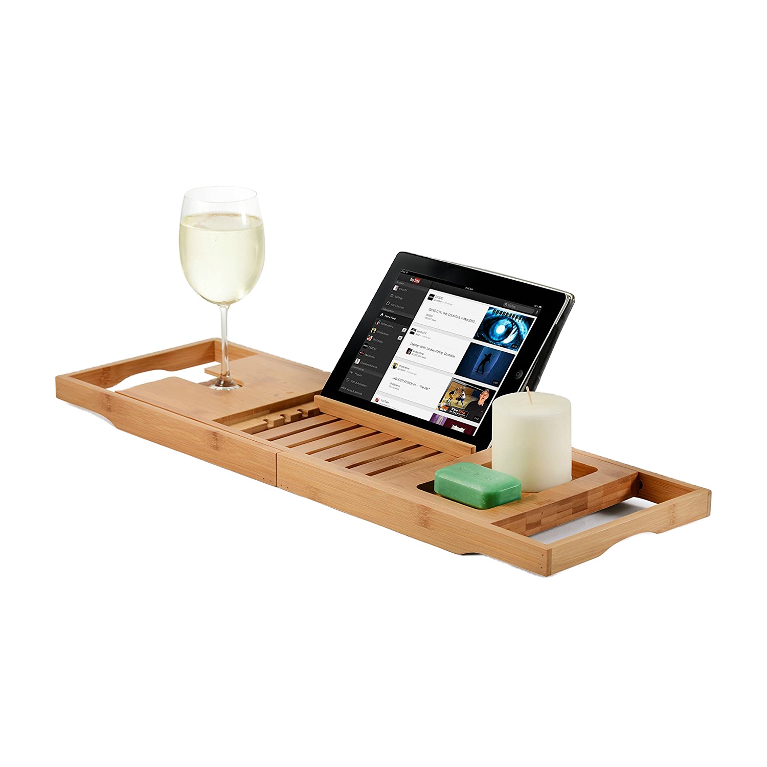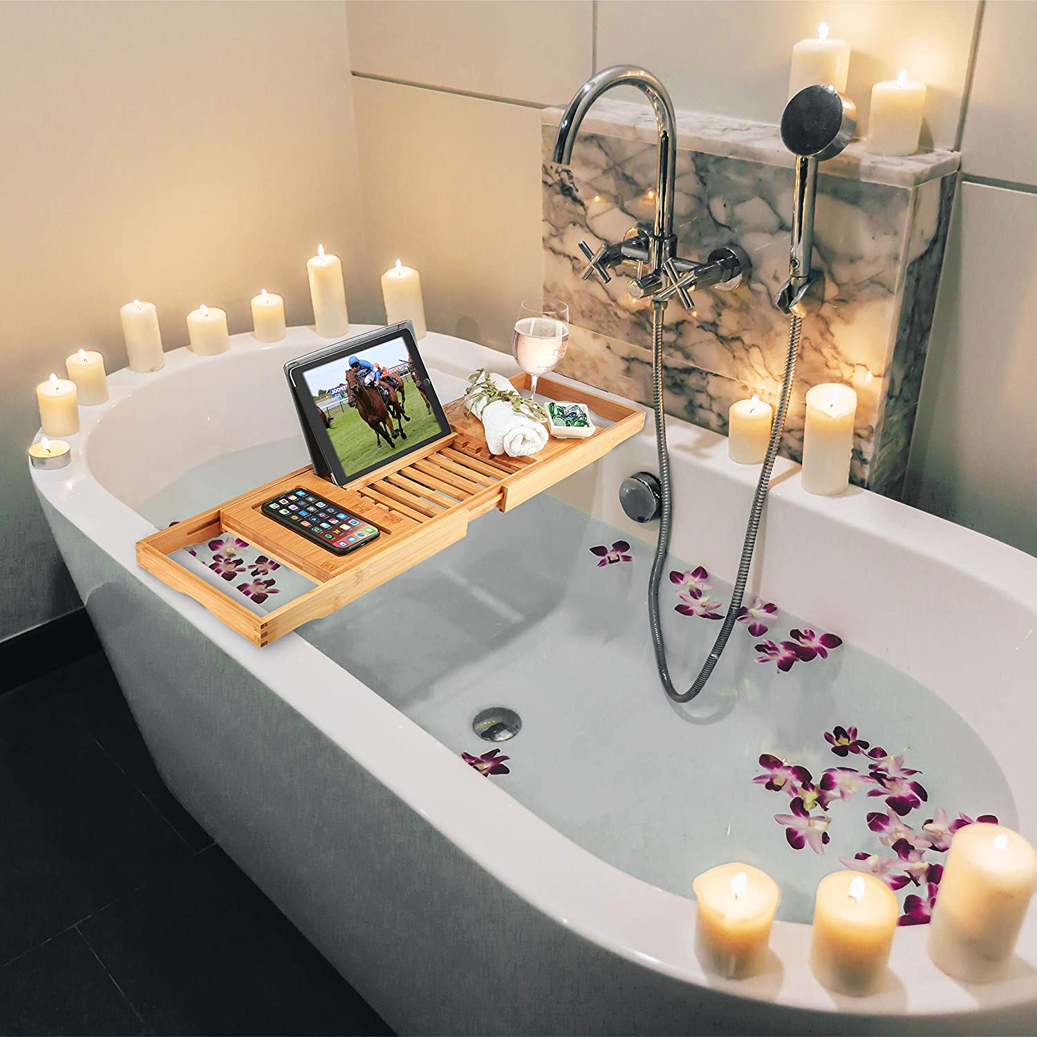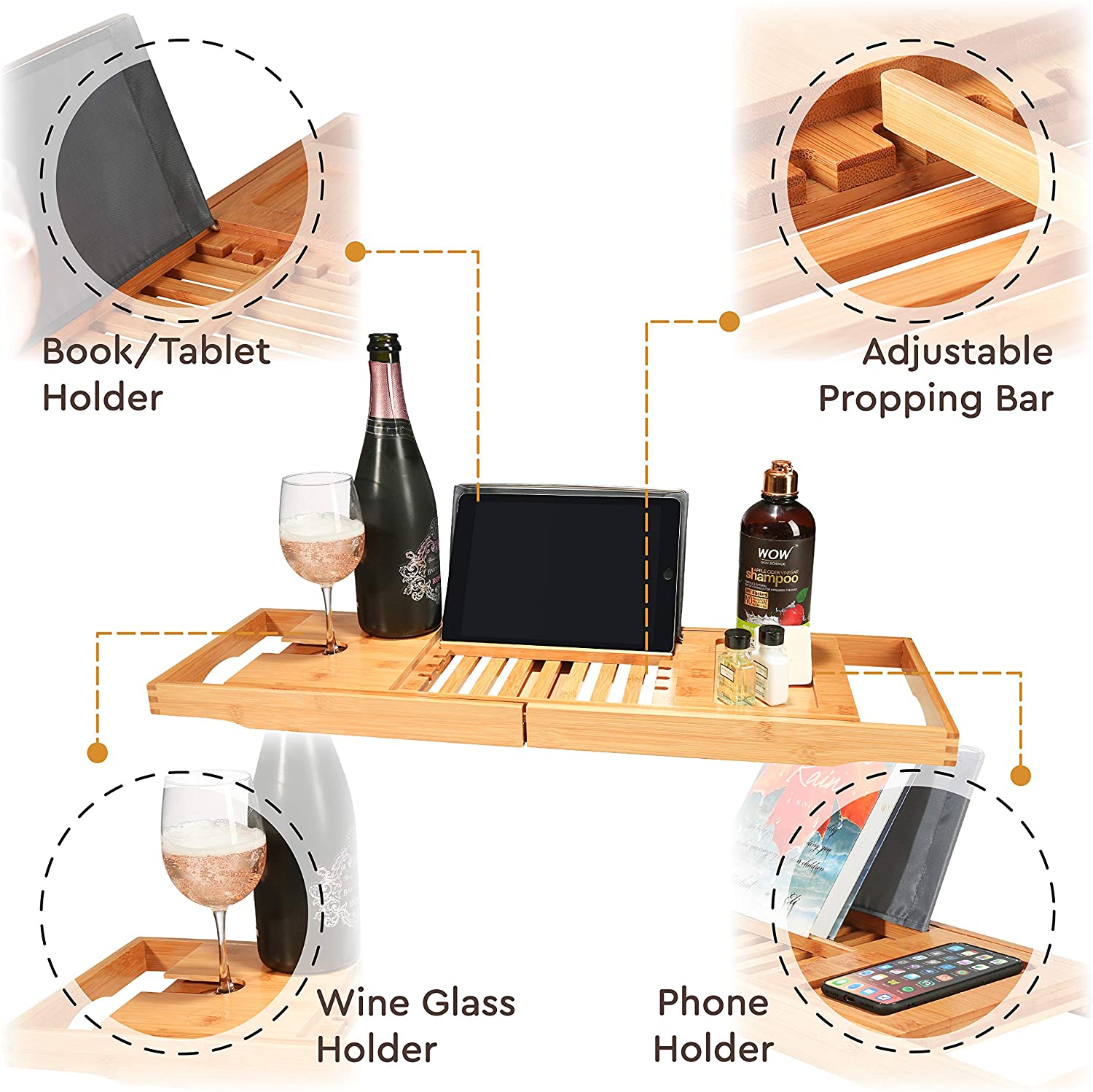 Bath tray come with three slots to adjust angles when reading or watching movies while taking a soak bath.