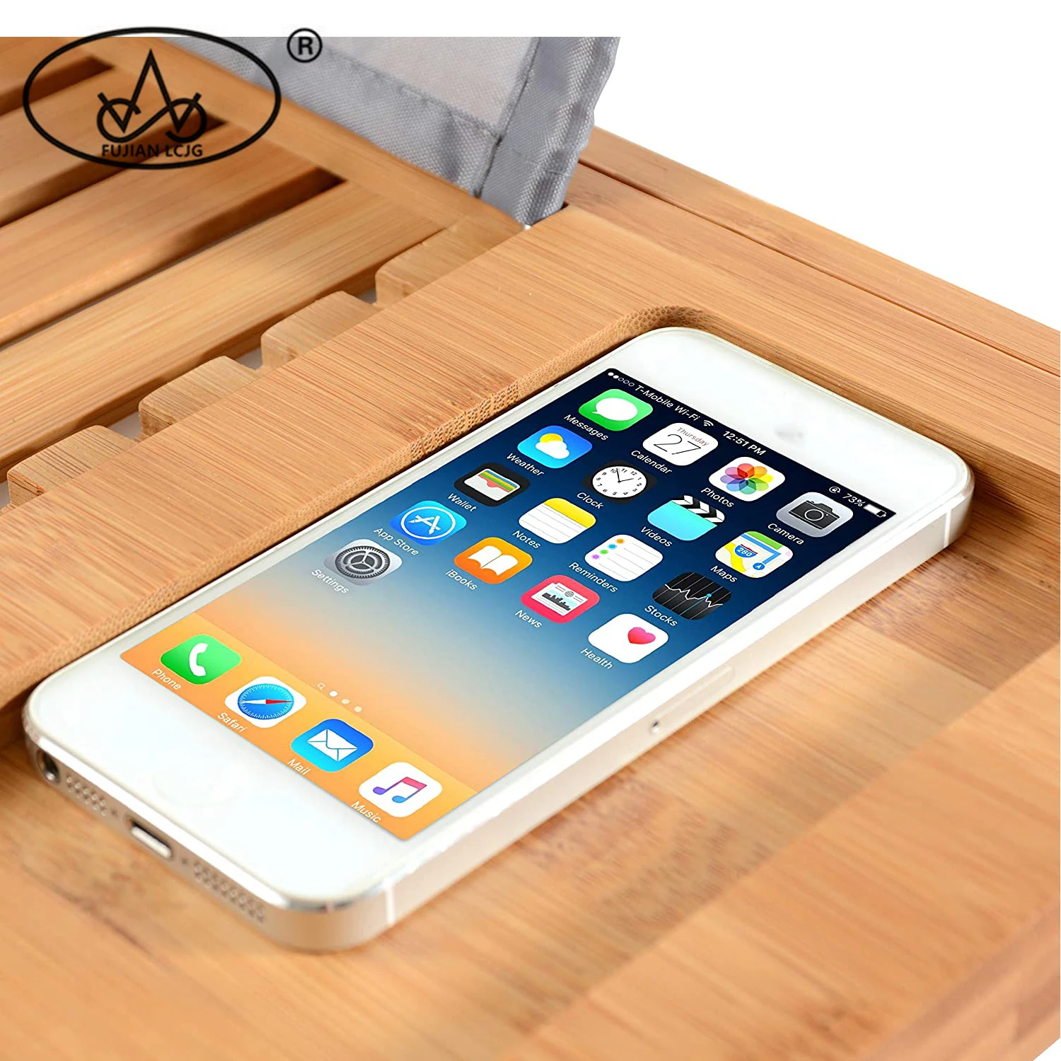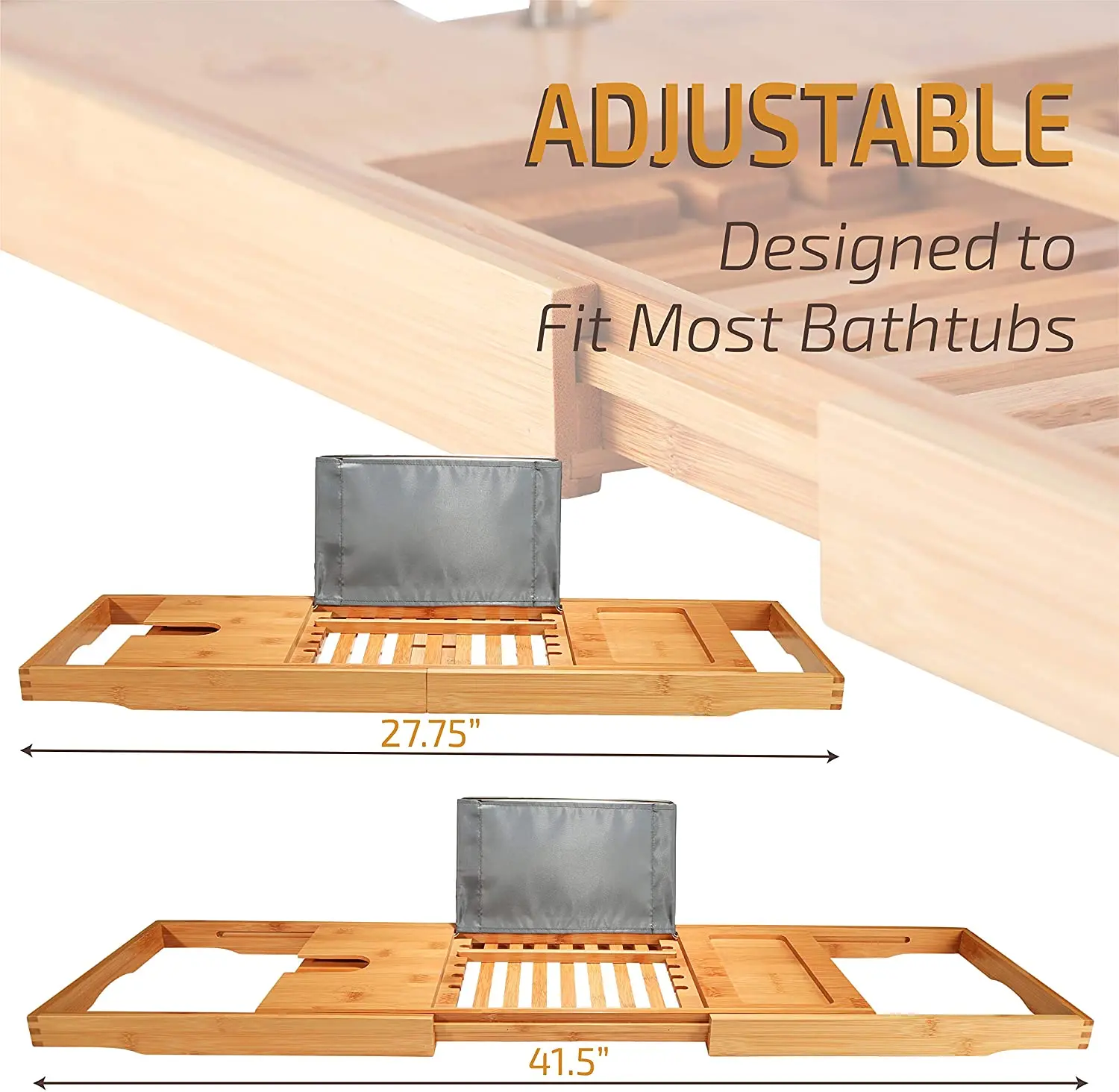 Factory Best Sellers Luxury Bamboo Bathtub Tray Caddy Wood Bath Tray With Expandable Sides Book Tablet Phone Wine Glass Holder