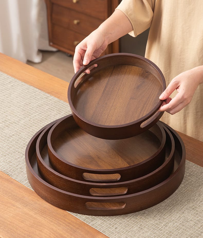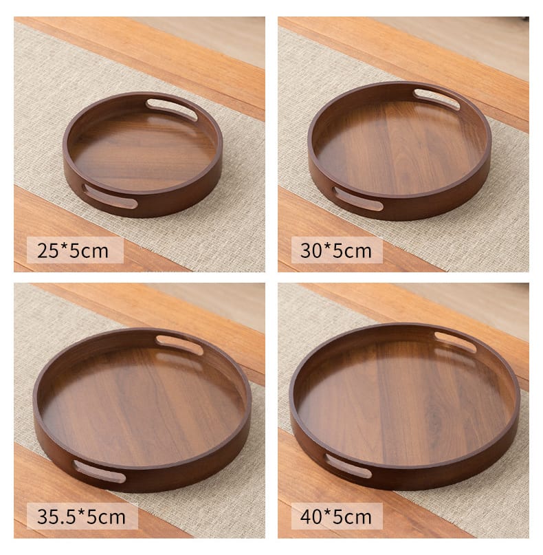 Factory Custom Color Bamboo Tray Table Food Breakfast Serving Tray Decorative Rustic Round Shape Wooden Tea Coffee Tray