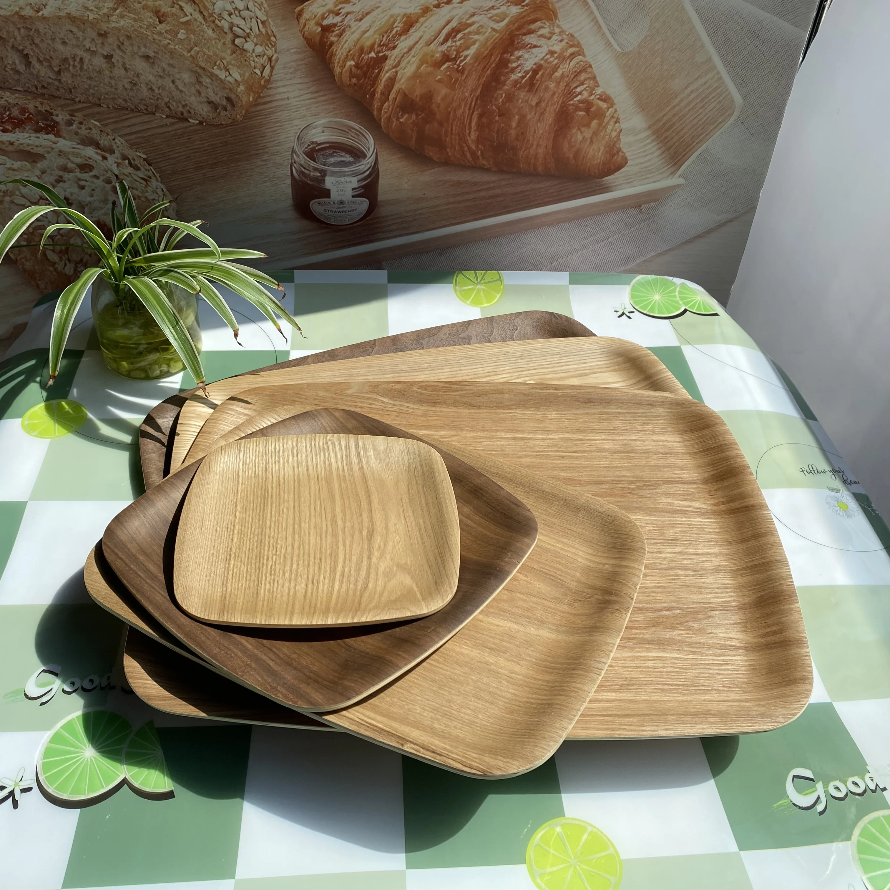 Factory Custom Wood Serving Plate round Square Tray for Dessert Coffee Tea Dinnerware-for Desk or Living Room