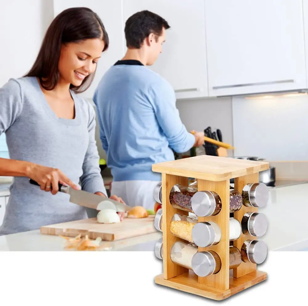 Factory Customized New Style Durable Kitchen Rack Bamboo Wooden Spice Rack Kitchen Accessories Set Storage Racks