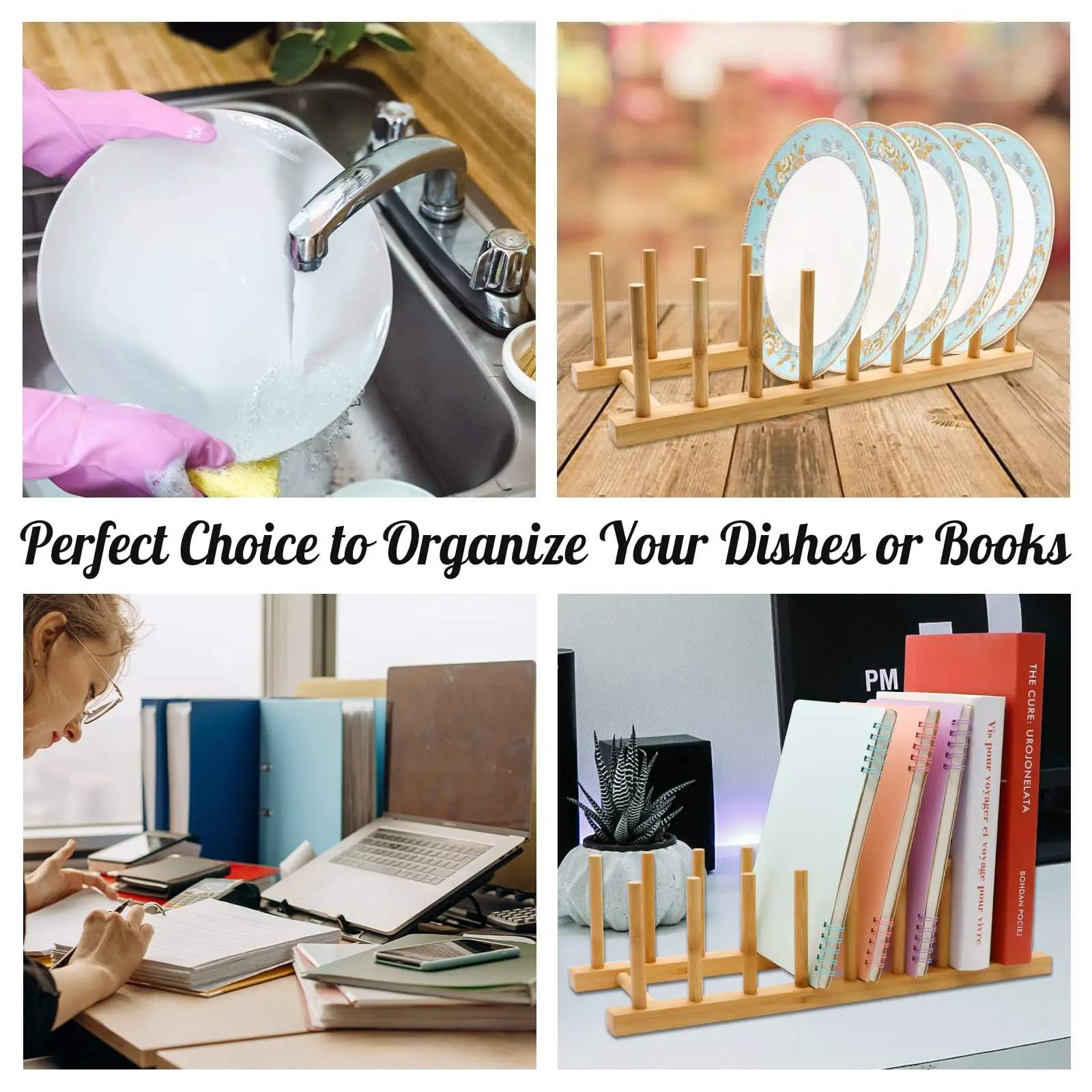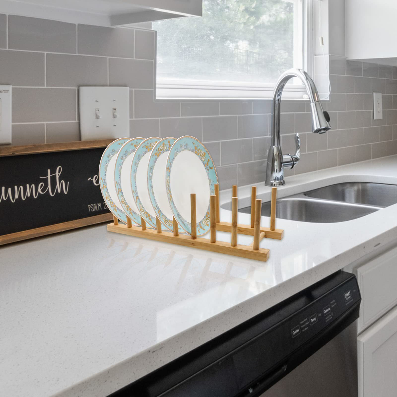 Factory Hot Selling Plate Rack Stand Pot Lid Holder Cabinet Dish Organizer Rack Bamboo Dish Drying Rack