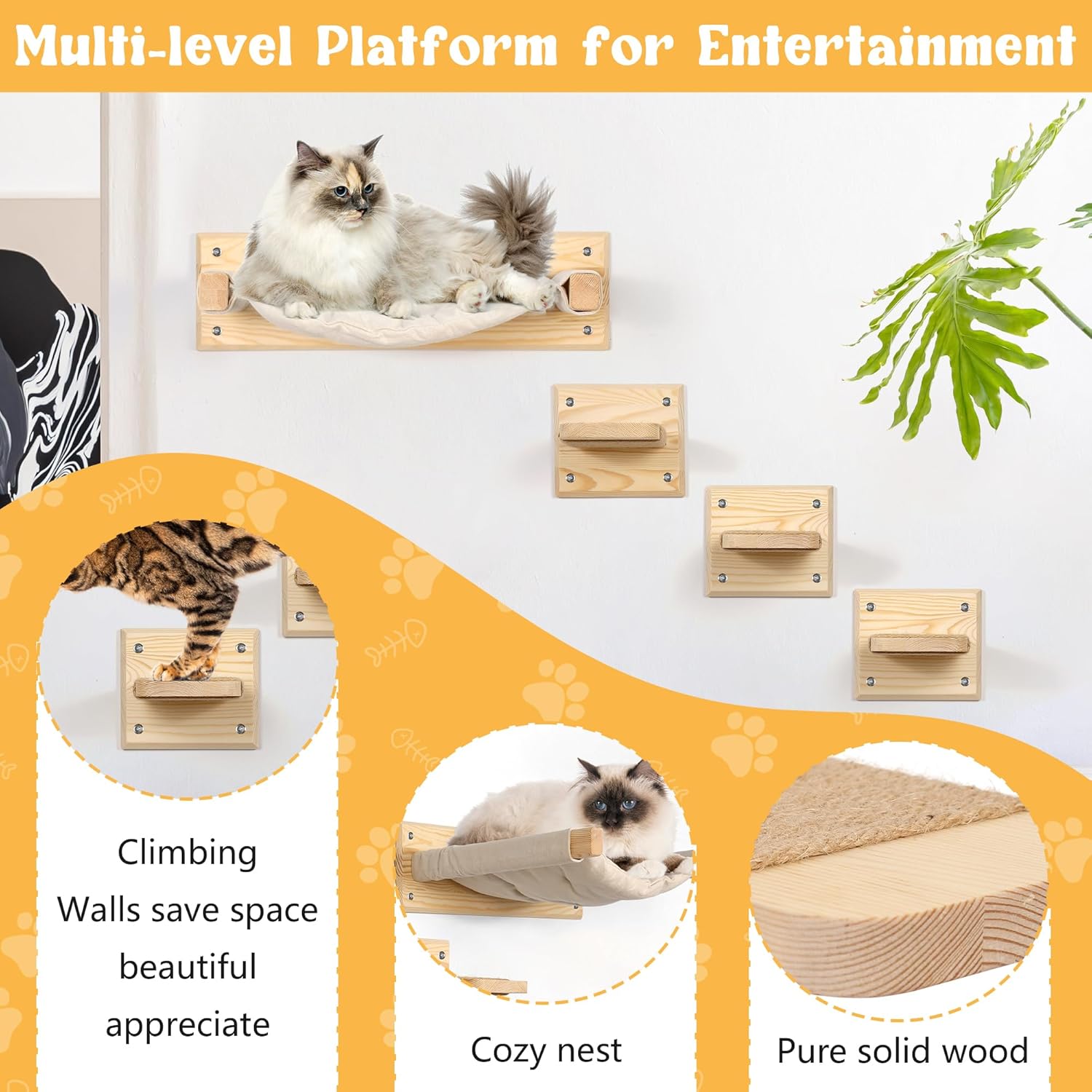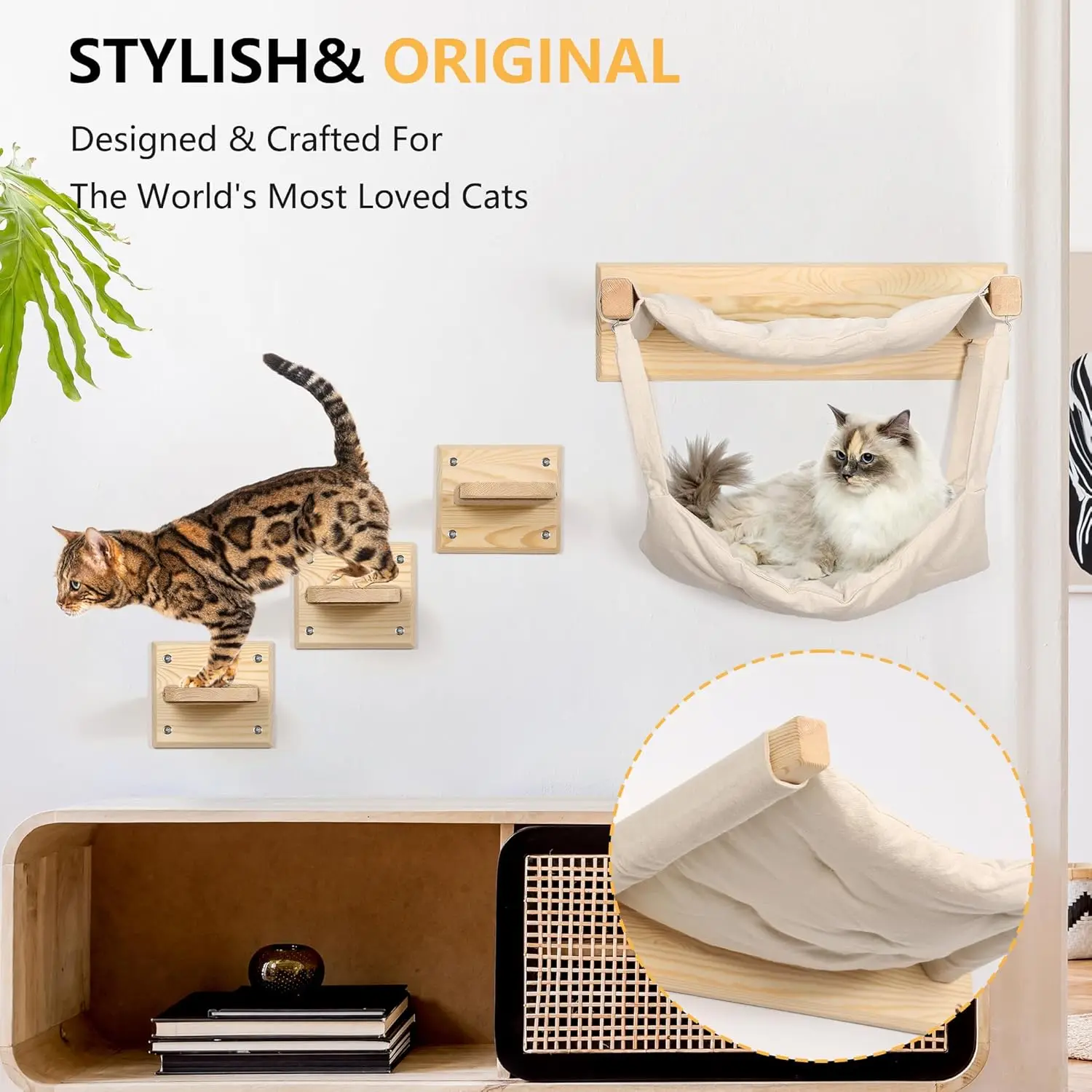 Product Name | New solid wood double layer cat hammock swing hanging bed with stairs on the wall | |||||