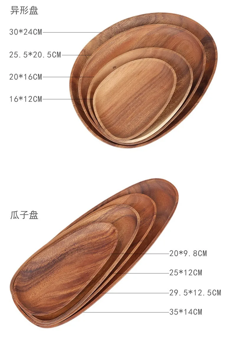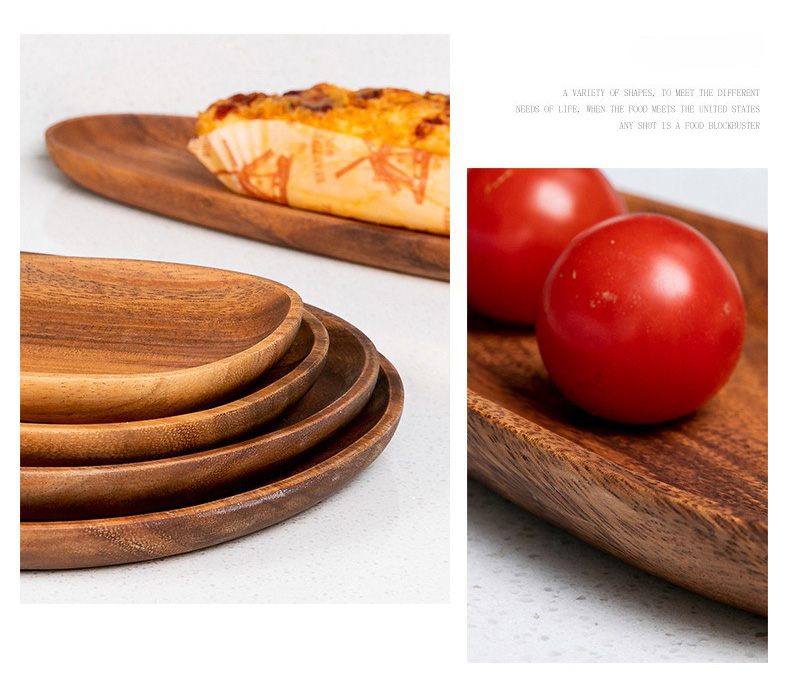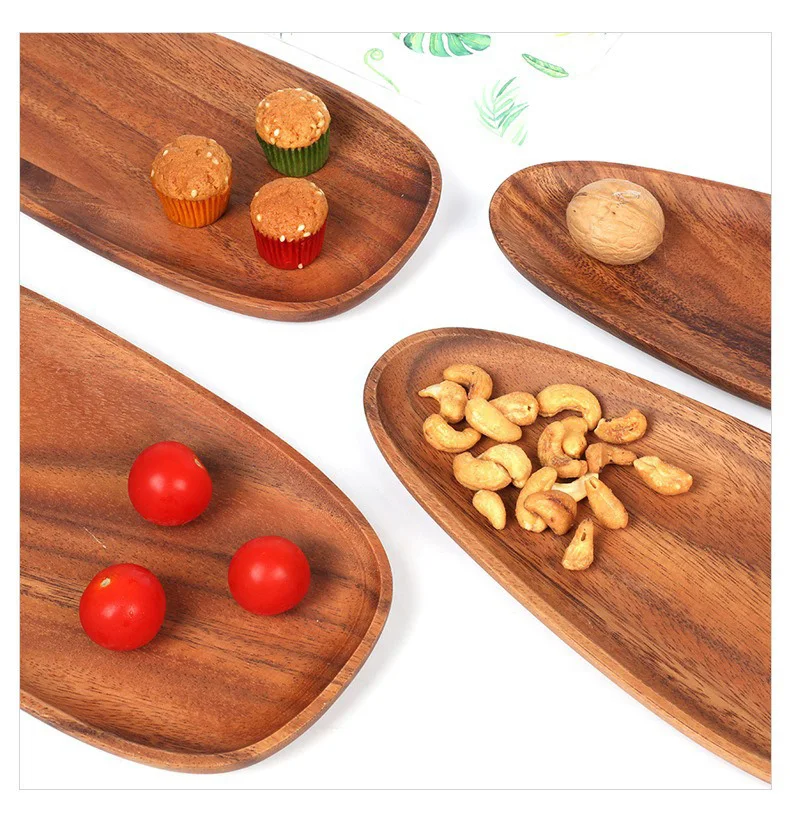 Factory Wholesale Eco-Friendly Rectangular Walnut Fruit Plate Household Snacks Dinner Plate Made of Acacia Wood