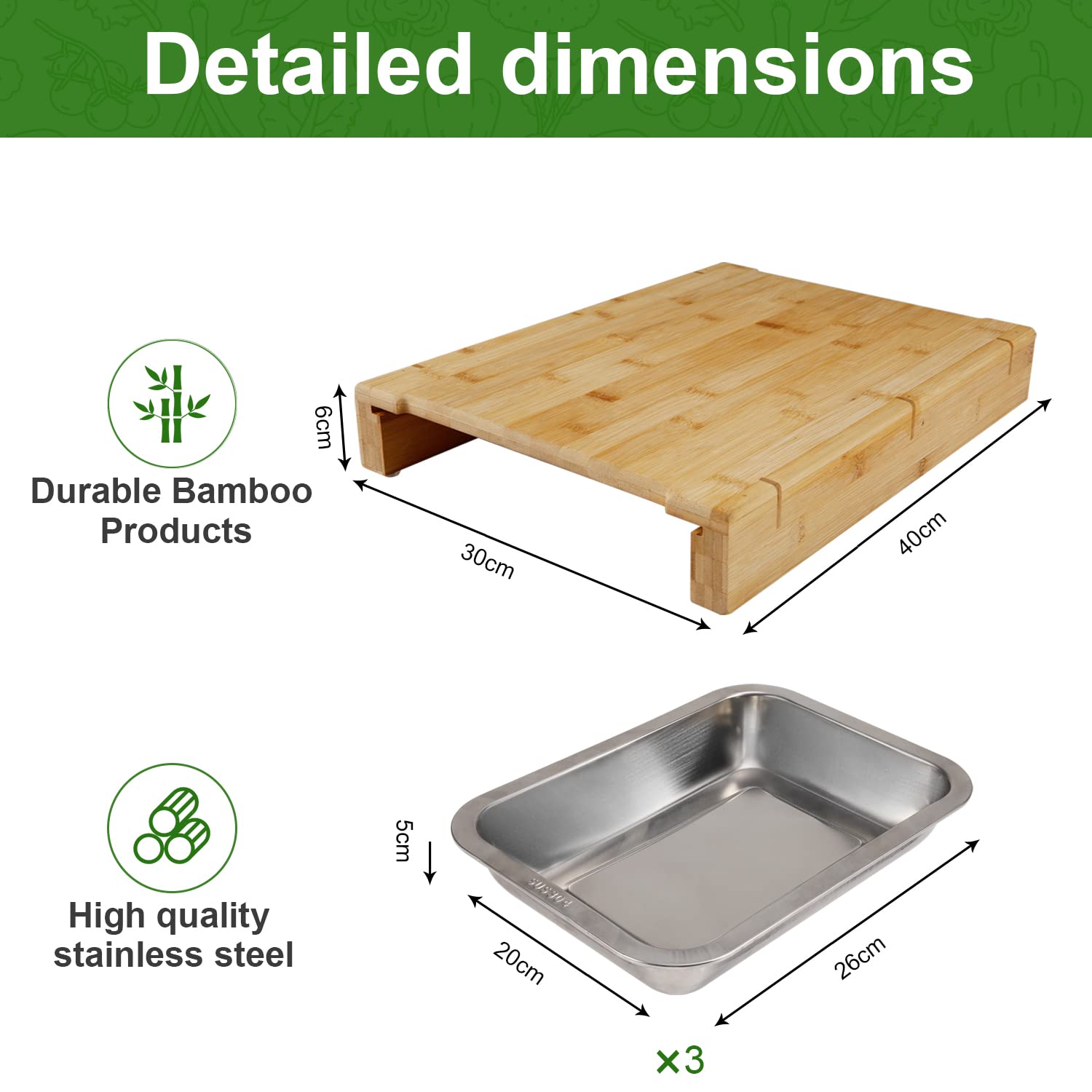 Factory Wholesale Kitchen Large Cutting Board Bamboo Chopping Board with Stainless Steel Trays