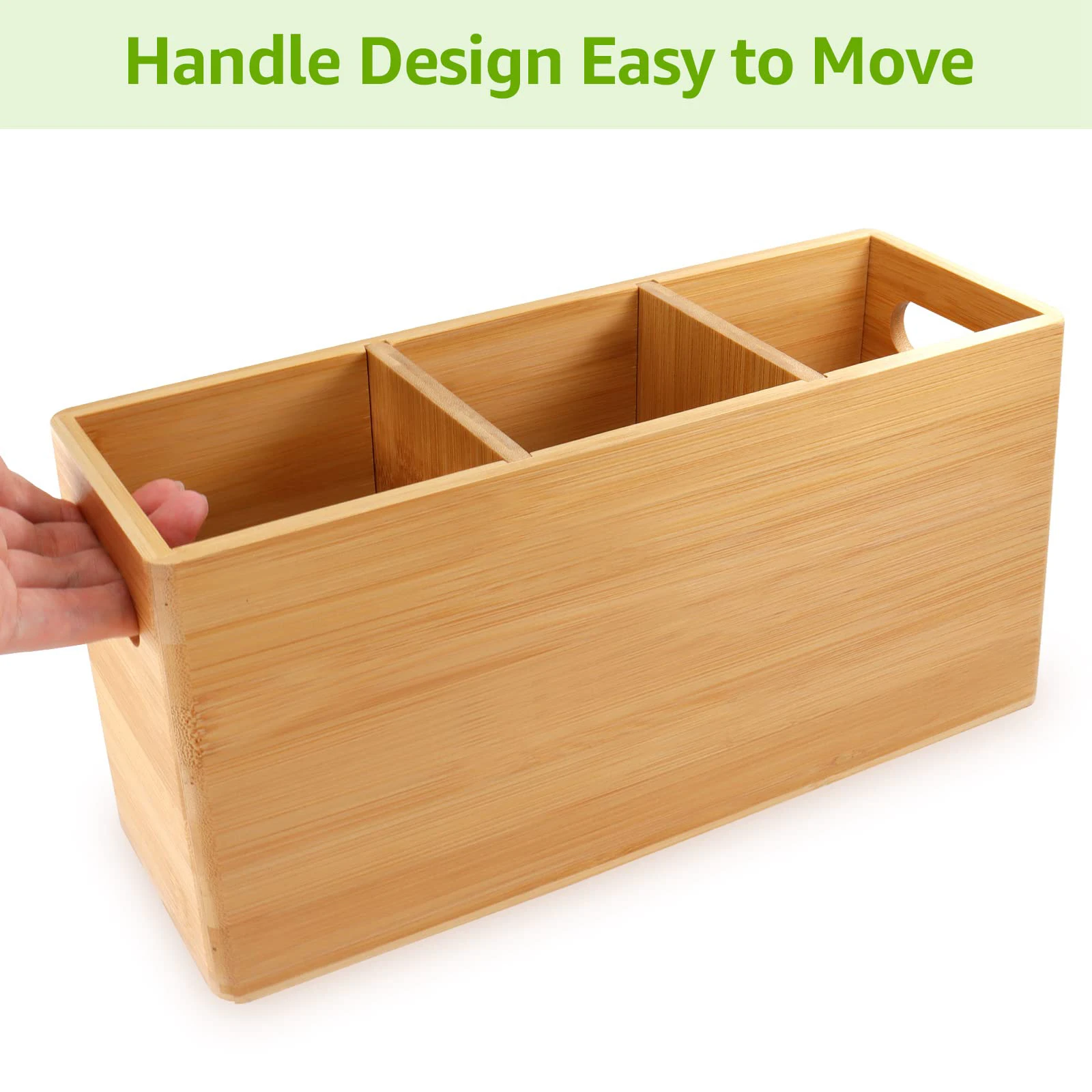 Factory Wholesale Large Bamboo Detachable Utensil Caddy 3 Compartments Utensil Holder for Kitchen Counter
