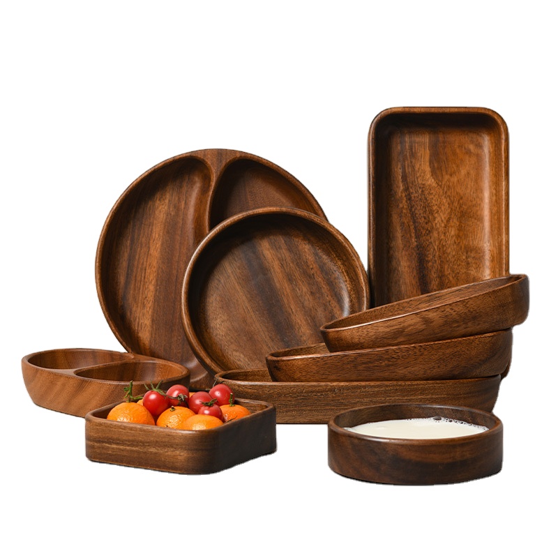 Factory Wholesale Walnut Fruit Plate Rectangular Household Snacks Fruit Acacia Wood Dinner Plate