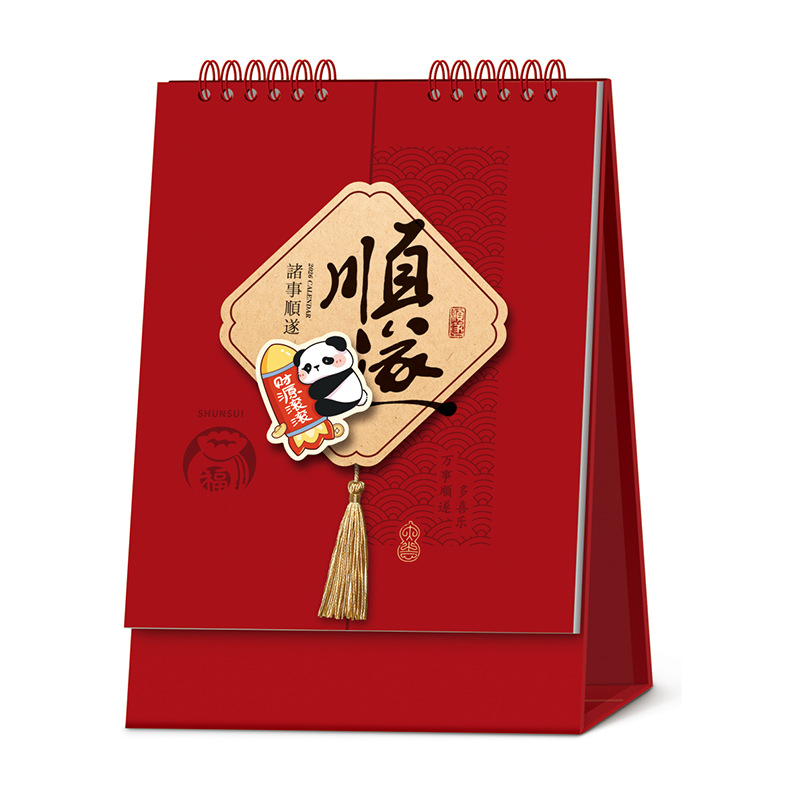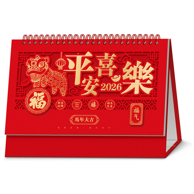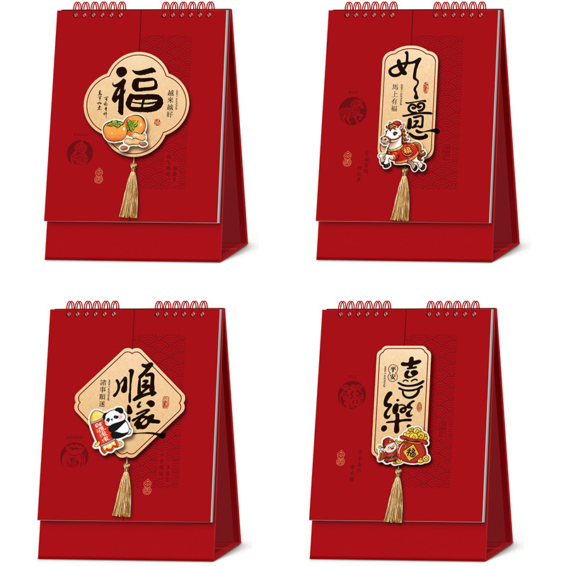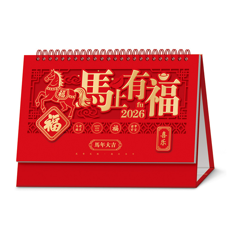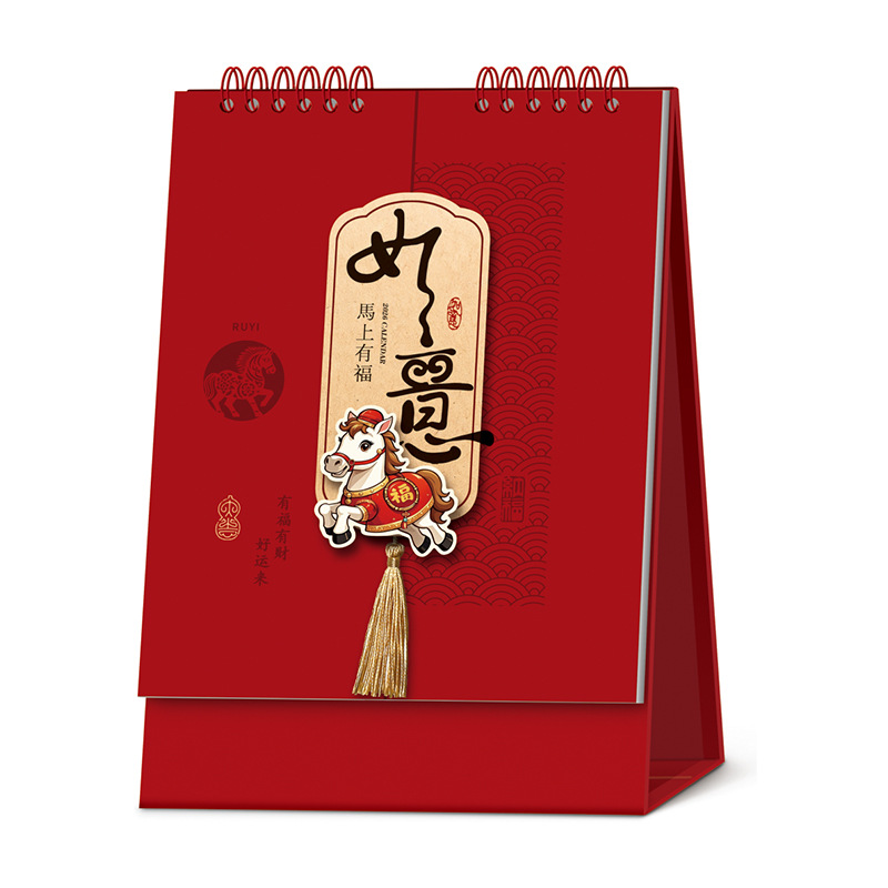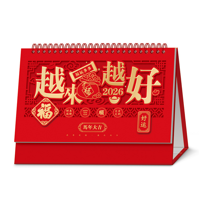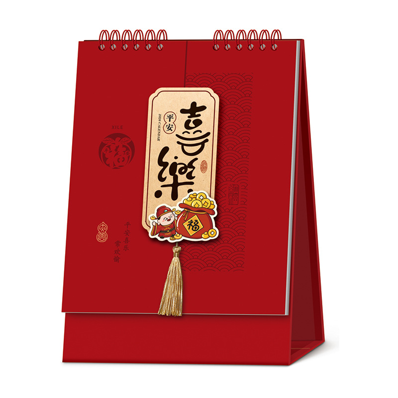 Fluorescent Chinese red calendar auspicious three-dimensional carved calendar 2026 hot stamping advertising logo enterprise special edition desk calendar