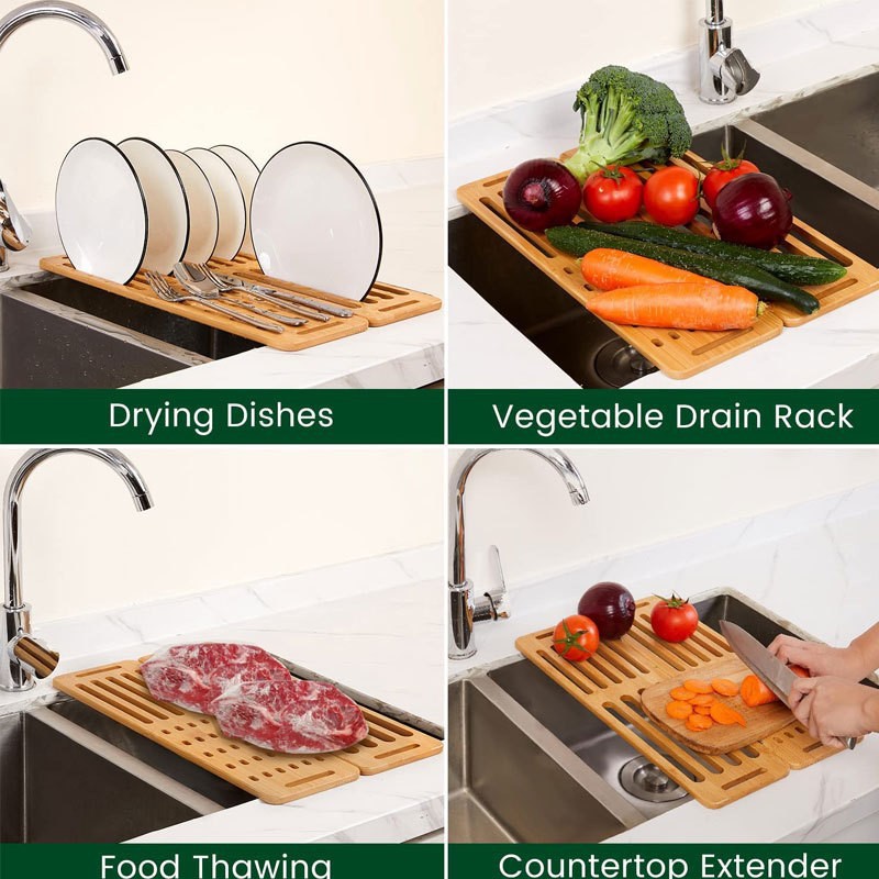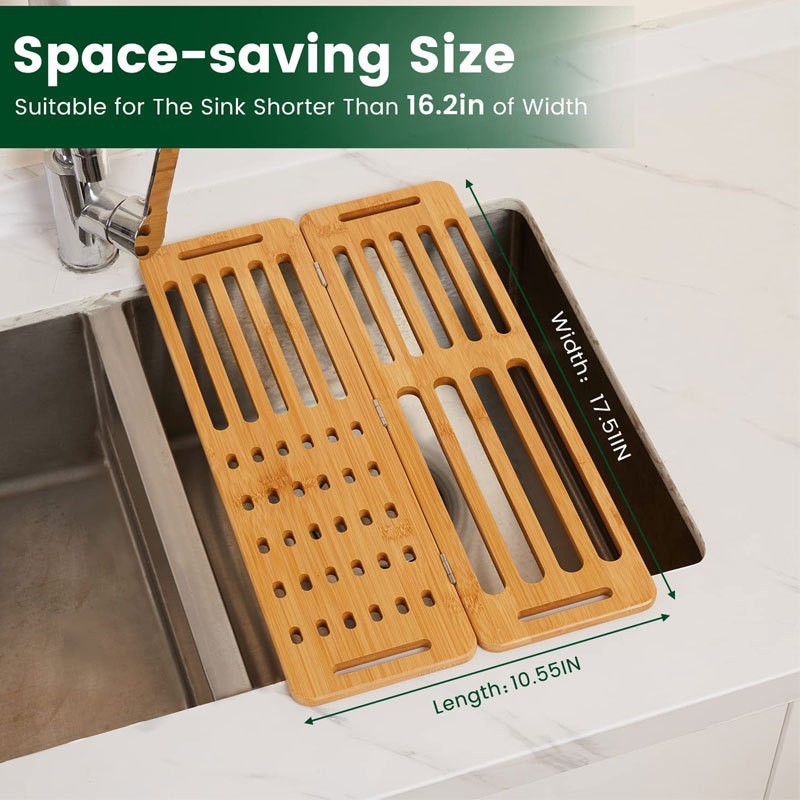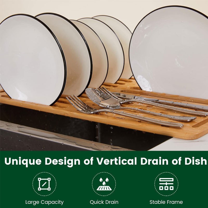 Foldable Bamboo Dish Drying Rack. Over the Sink Drying Rack. Dish Drainer for Kitchen Countertop Bamboo Dish Drying Rack