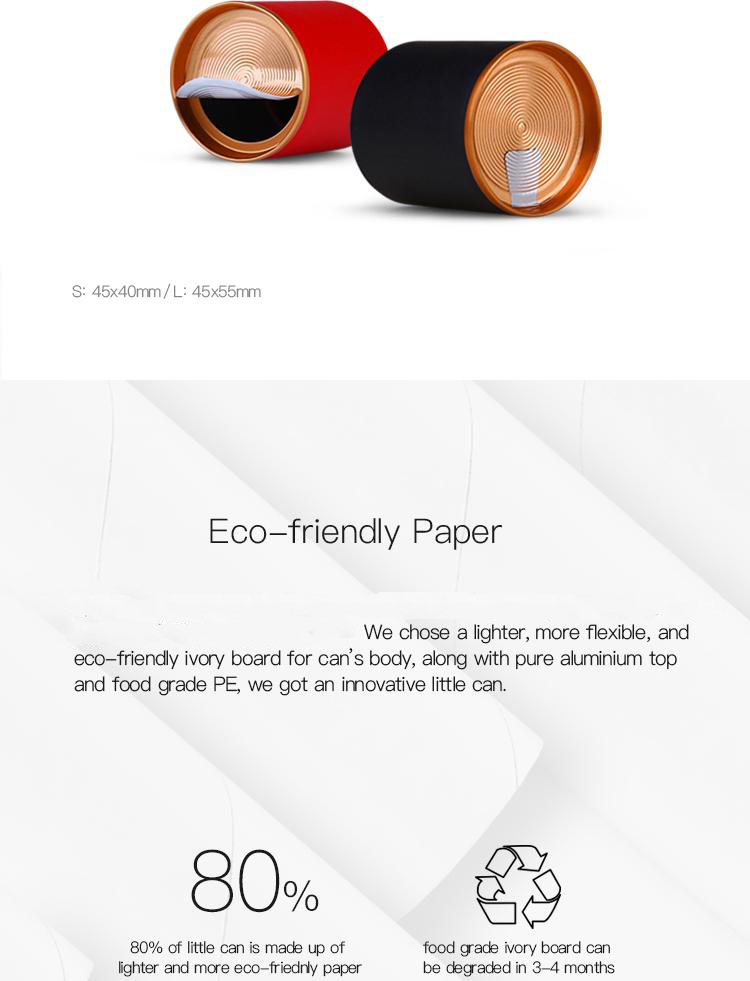 Aluminum Lid. White Card Core. Special Paper