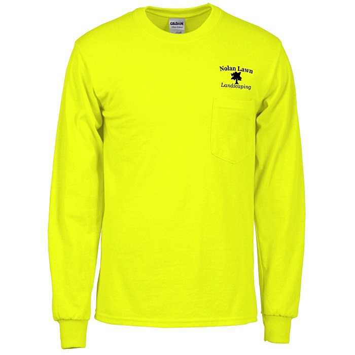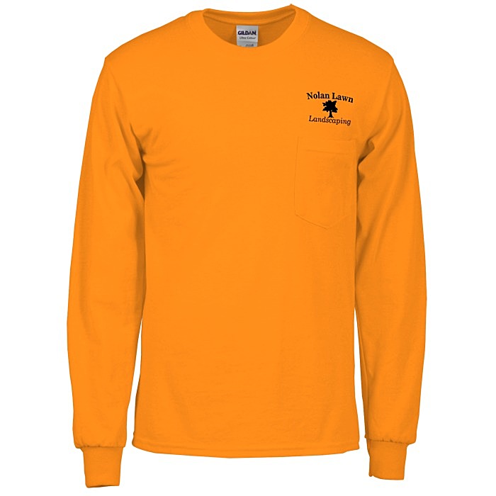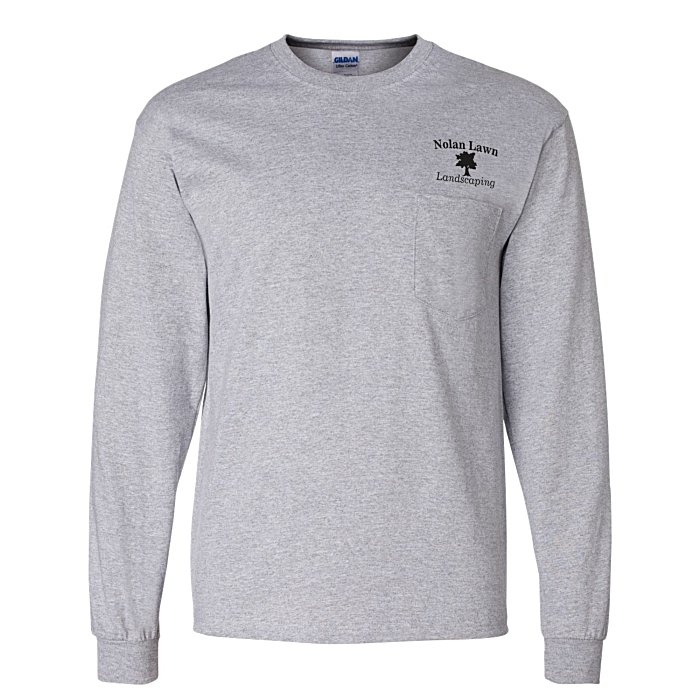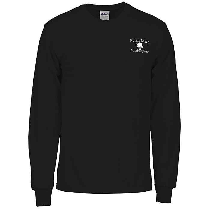 This Gildan® Ultra Cotton® T-shirt features long sleeves and a left chest pocket for added comfort while showing off your logo. Made of 6-oz 100% cotton.