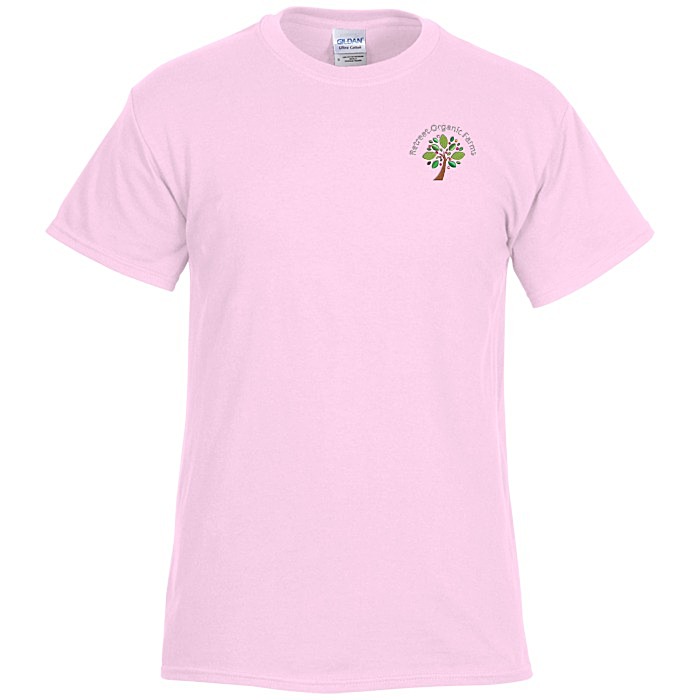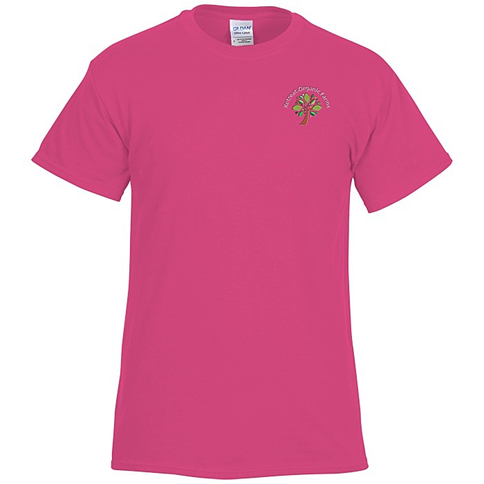 The Gildan® Ultra Cotton® T-shirt is the perfect promotional item to show off your logo and features the added durability of double-needle stitching. Made of 6-oz 100% cotton.