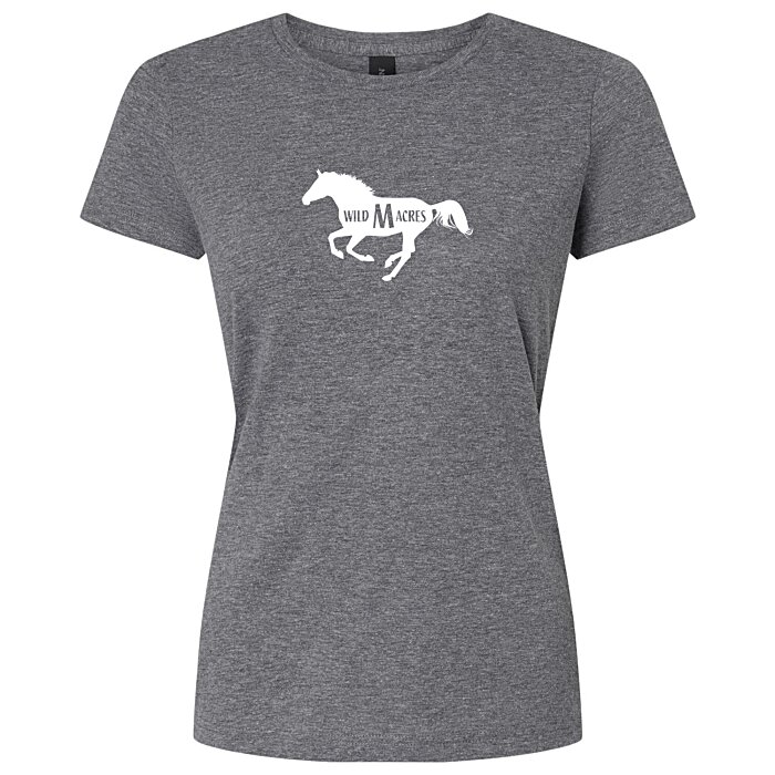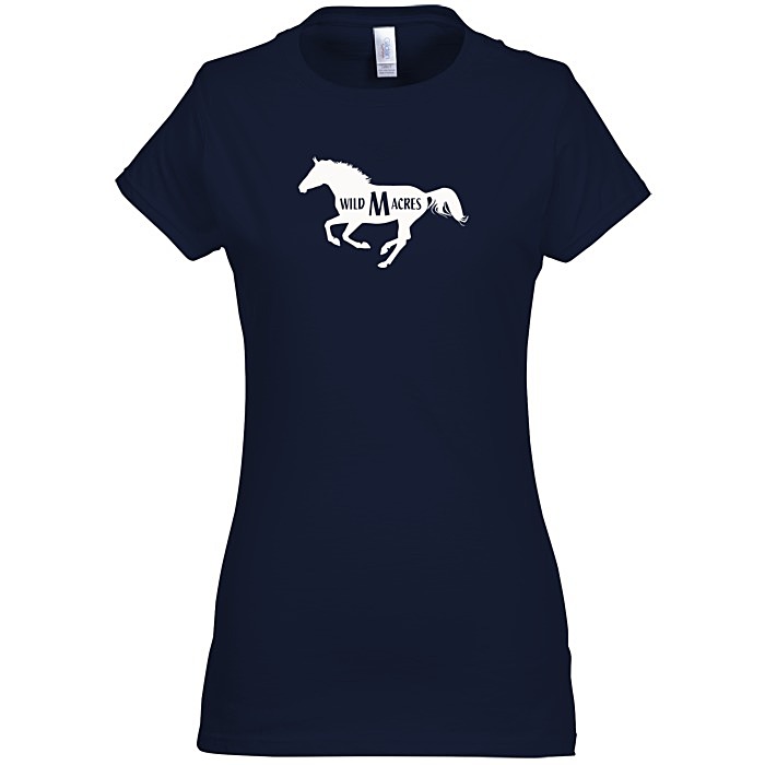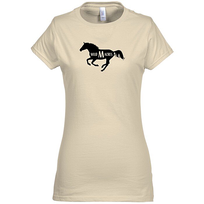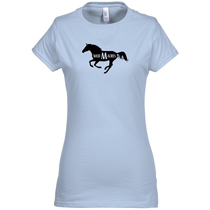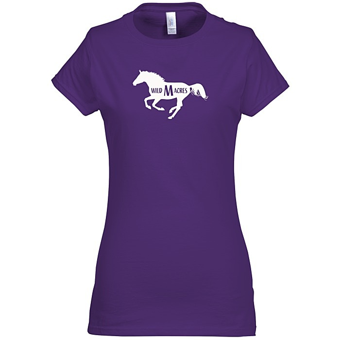 These Gildan® Softstyle® women’s short sleeve t-shirts are the perfect way to promote your brand. Designed with a tapered junior fit and nearly-cap sleeves.