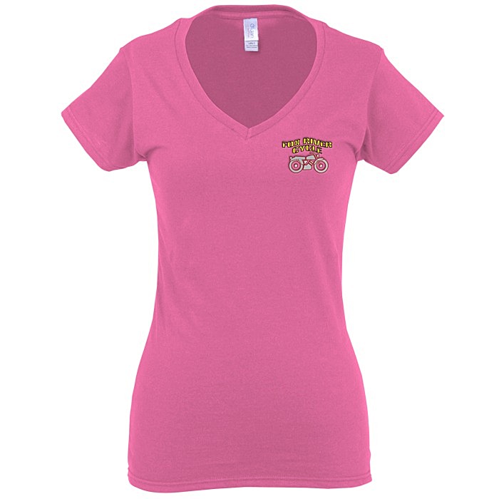 Gildan Softstyle V-Neck T-Shirt – Ladies – Colors – Embroidered 103476-L-VN-C-E