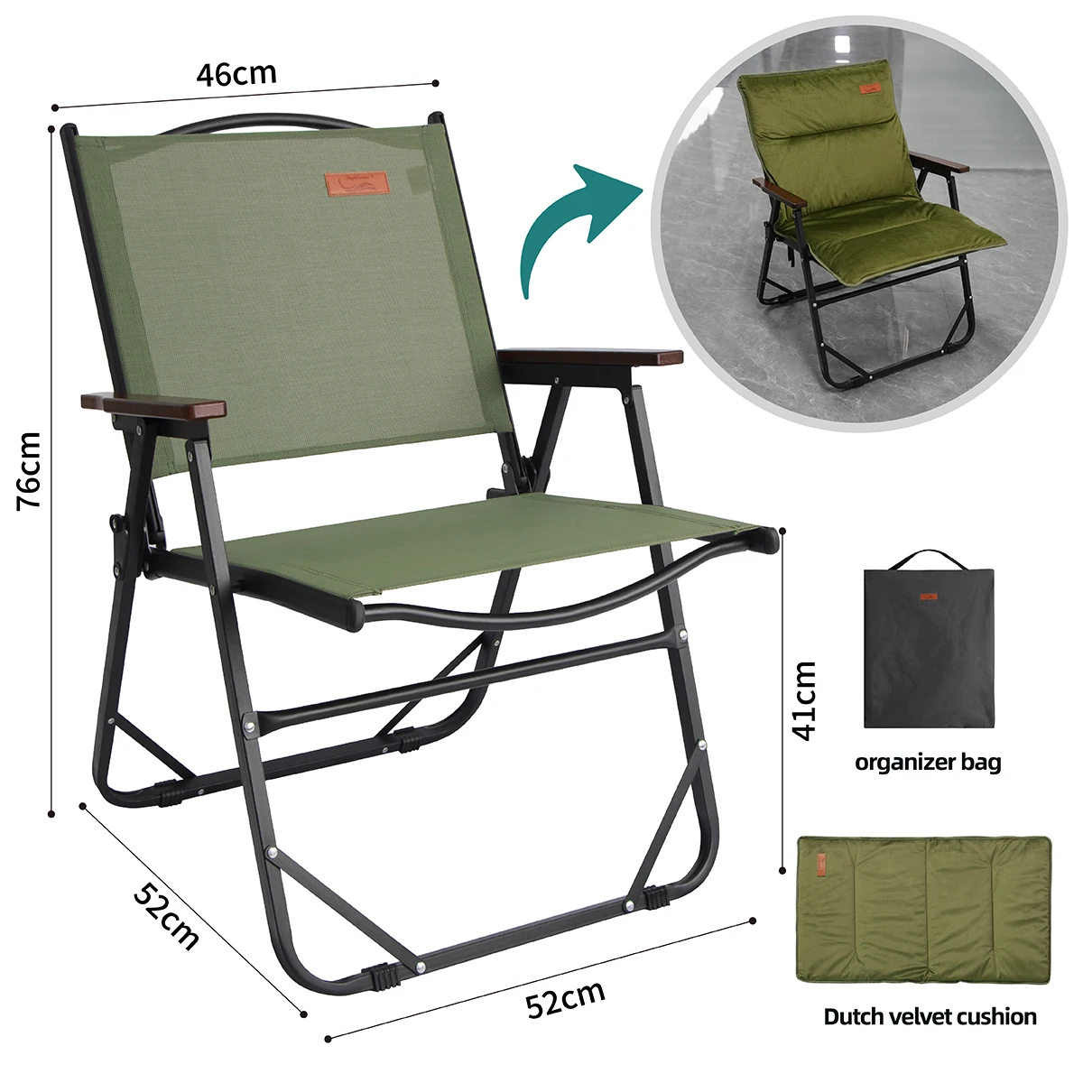 To meet the needs of different users. this camping chair offers two usage methods. You can choose to use the chair alone or with a thickened cushion. It is lightweight and easy to carry. making it suitable for scenarios such as having a picnic in the park or fishing by the river. Just easily unfold the chair and you can quickly get a comfortable seat. allowing you to enjoy the fun of outdoor leisure anytime and anywhere.