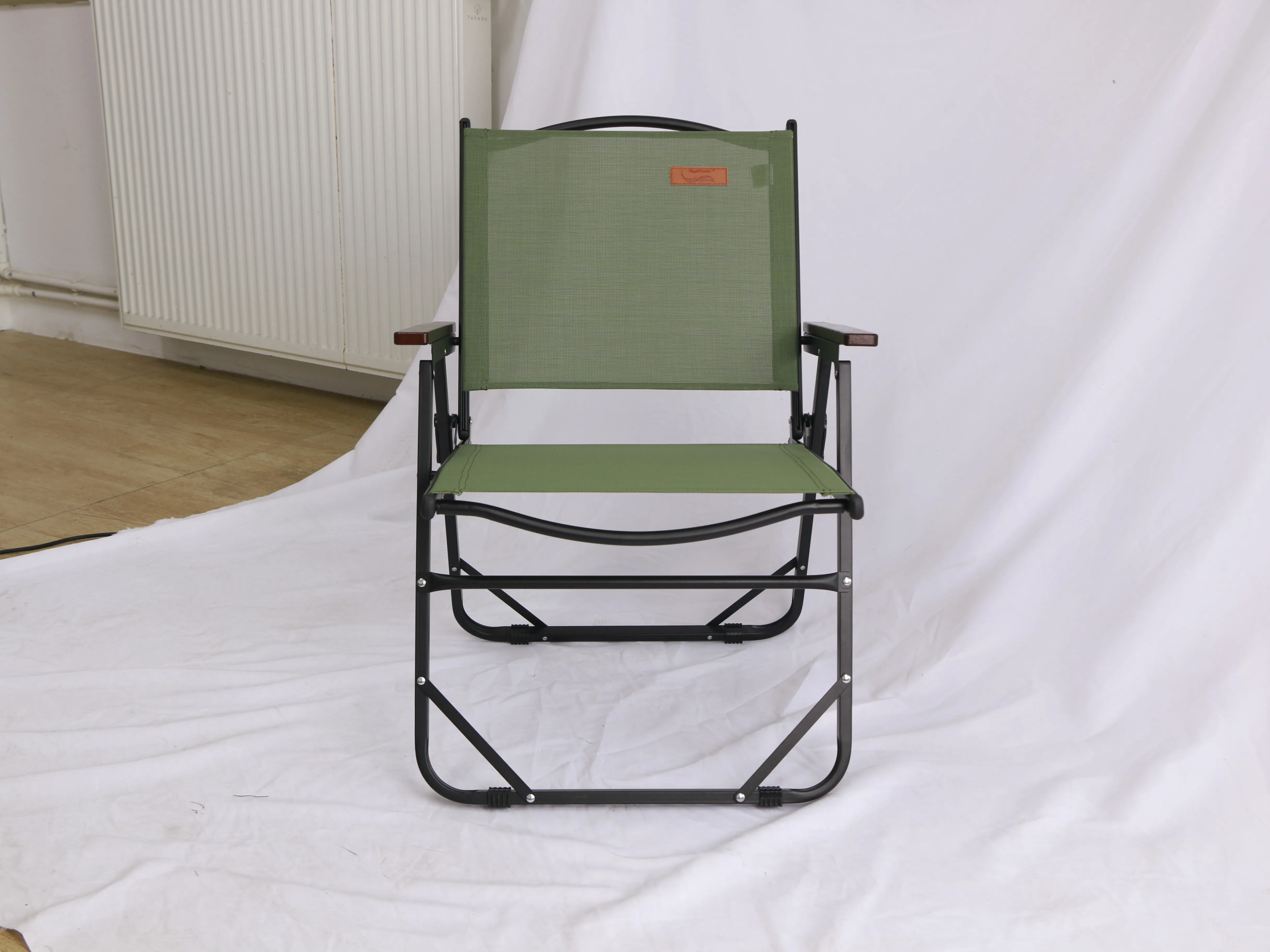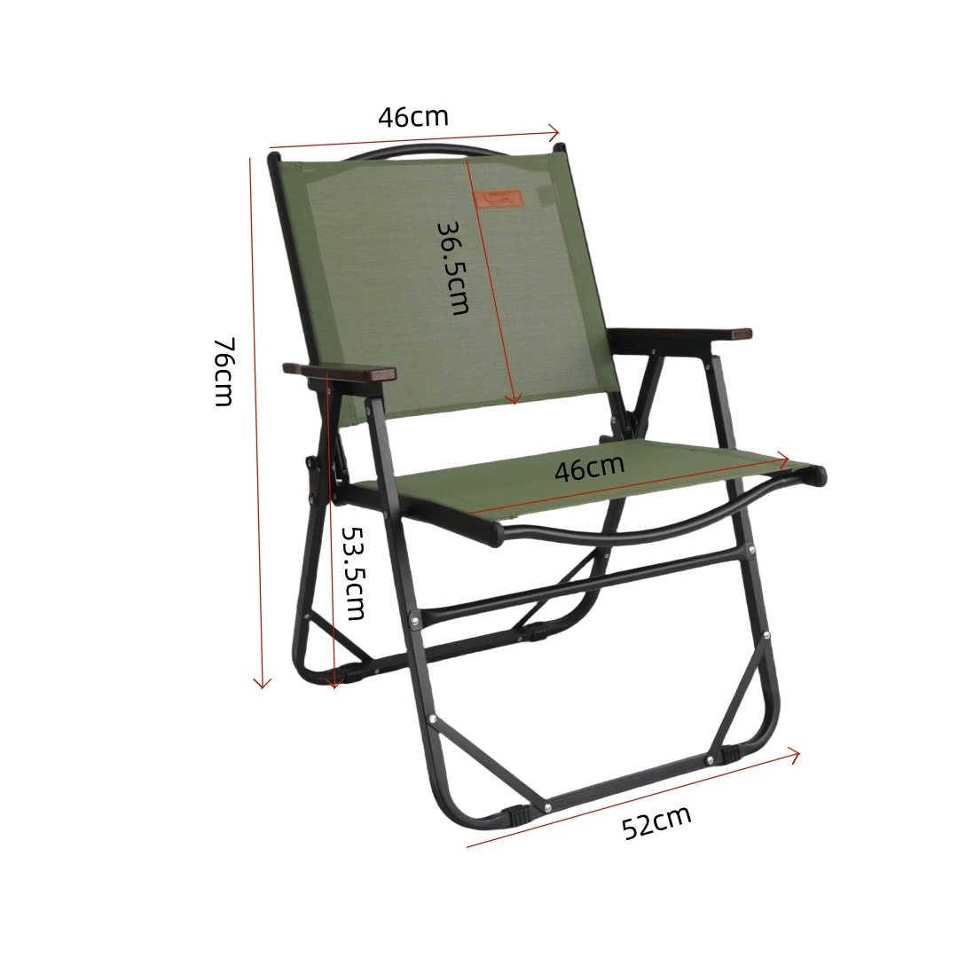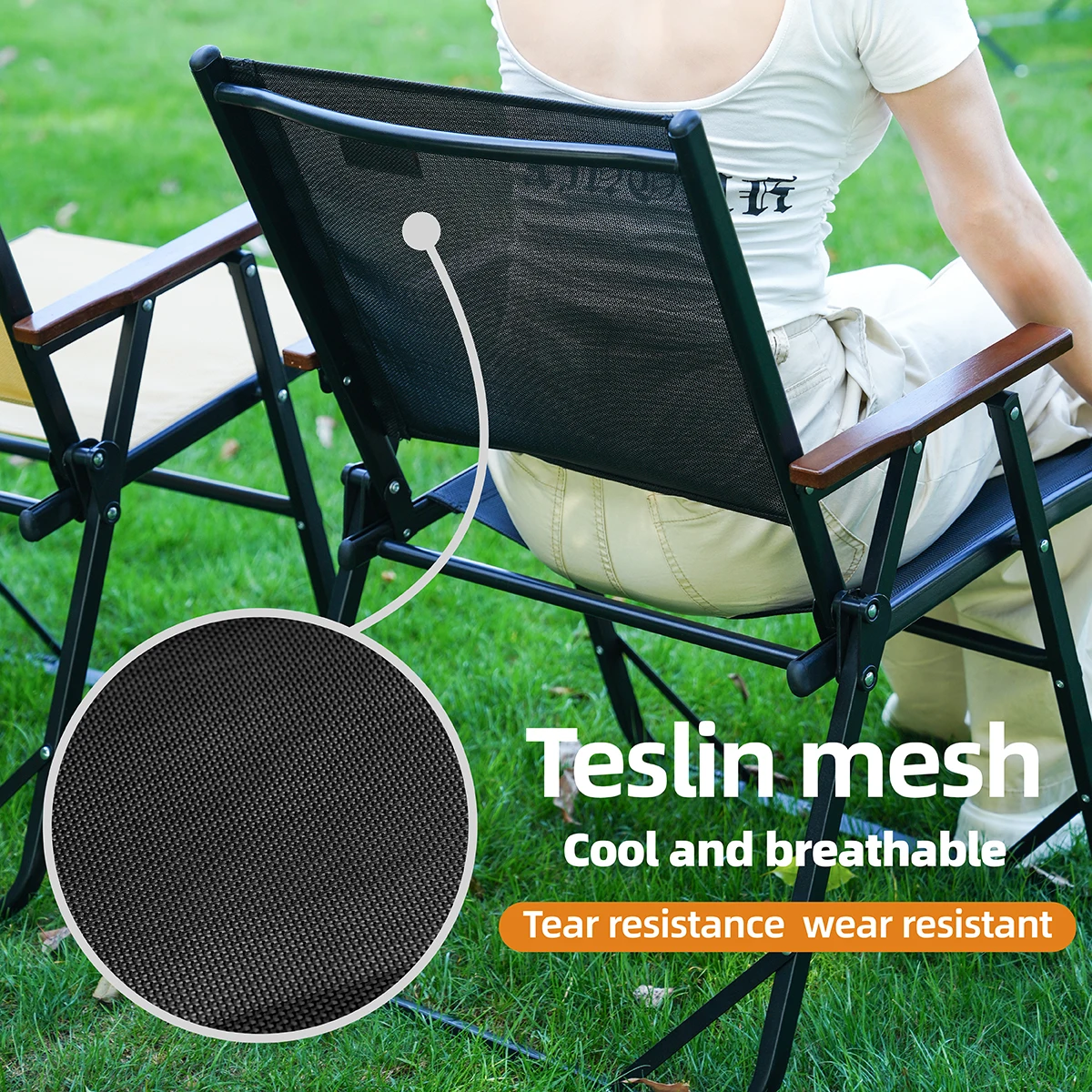 The seat surface of this camping chair is made of Teslin mesh fabric. Tesla mesh fabric has many outstanding features. It has excellent breathability. Even on a hot summer day. you won't feel stuffy when sitting on it for a long time. Sweat can evaporate quickly. keeping your body dry and comfortable all the time. Moreover. this kind of mesh fabric is highly wear-resistant. capable of withstanding frequent friction and usage. and can stand the test of complex outdoor environments. It also has excellent flexibility. which can well conform to the human body curve. providing you with comfortable support and making you feel gently wrapped in it.