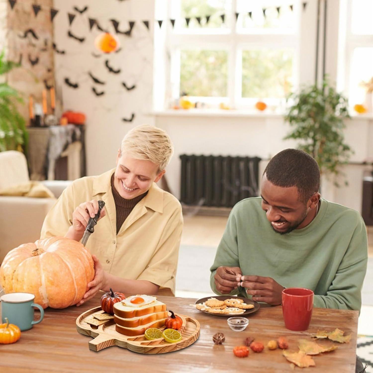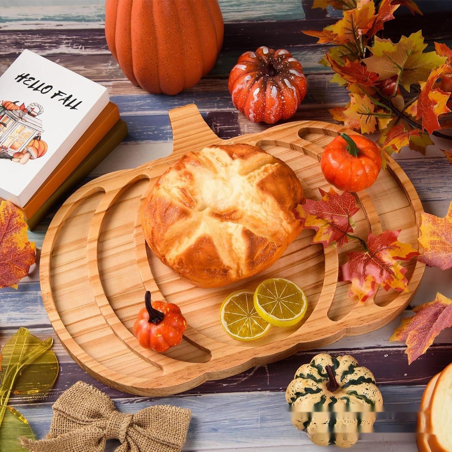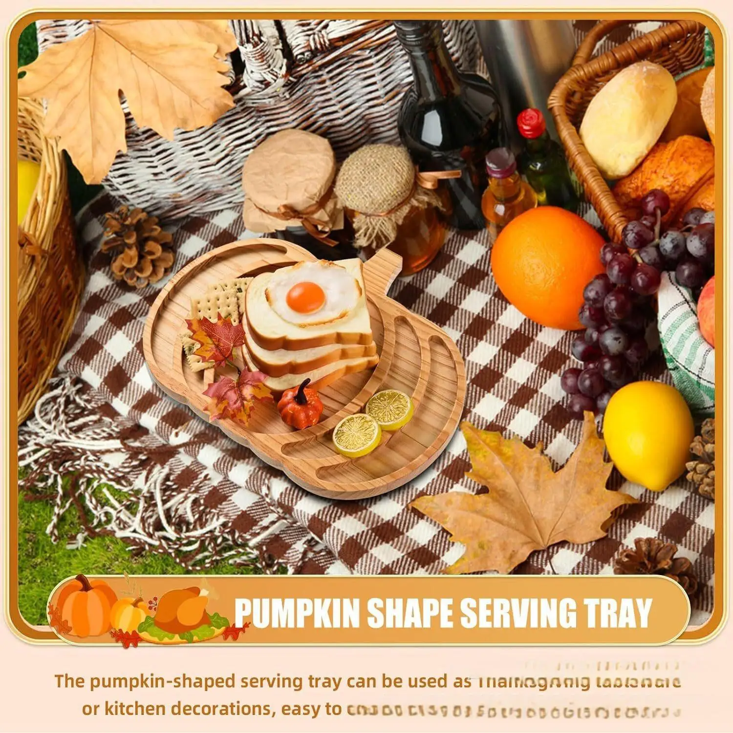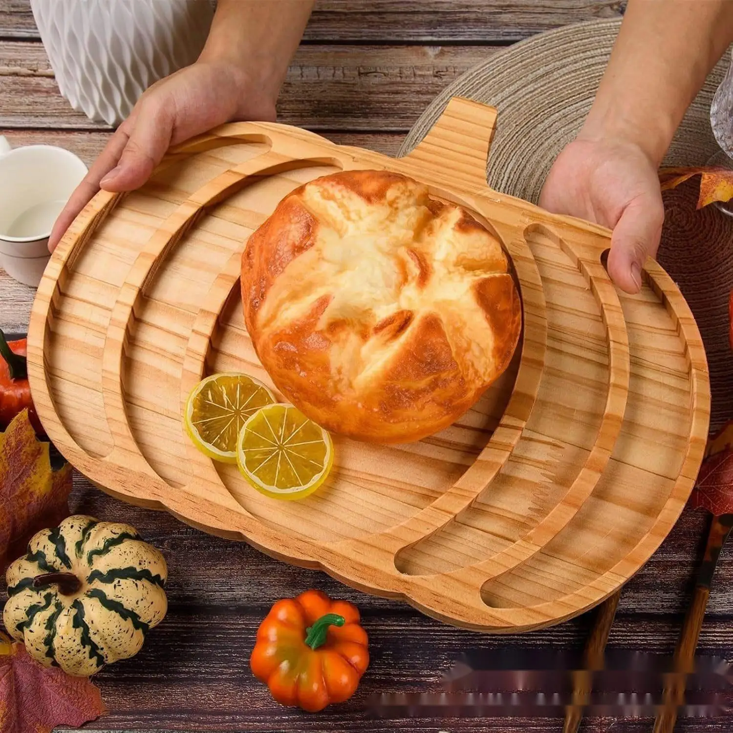 Halloween Wooden Pumpkin Tray Party Decoration Wooden Plate Cheese Cooked Food Divided Solid Wood Tray Fruit Plate