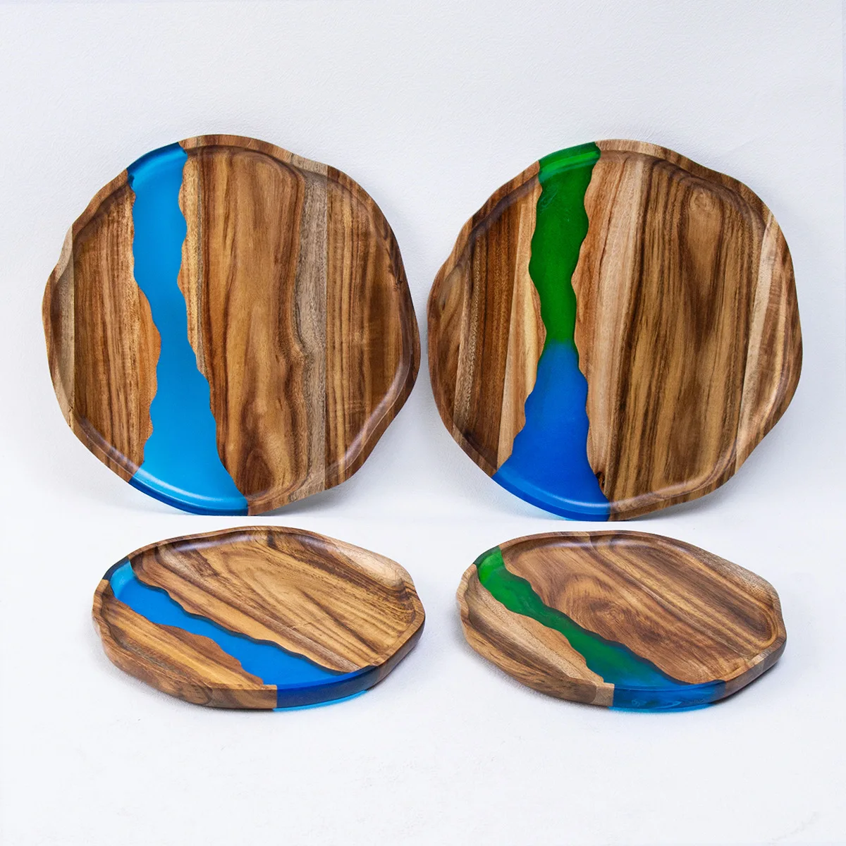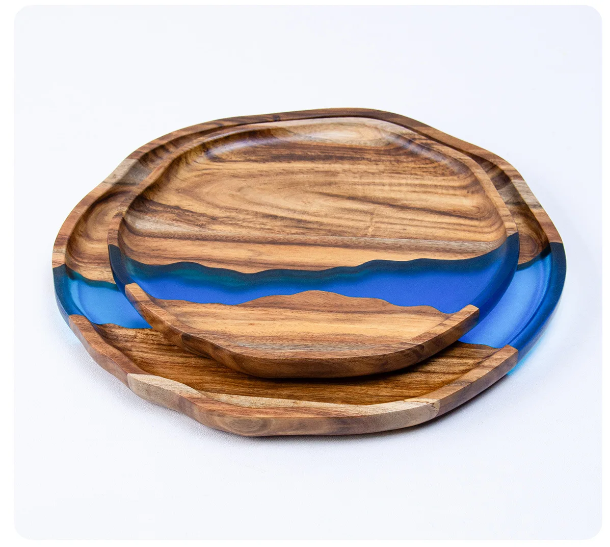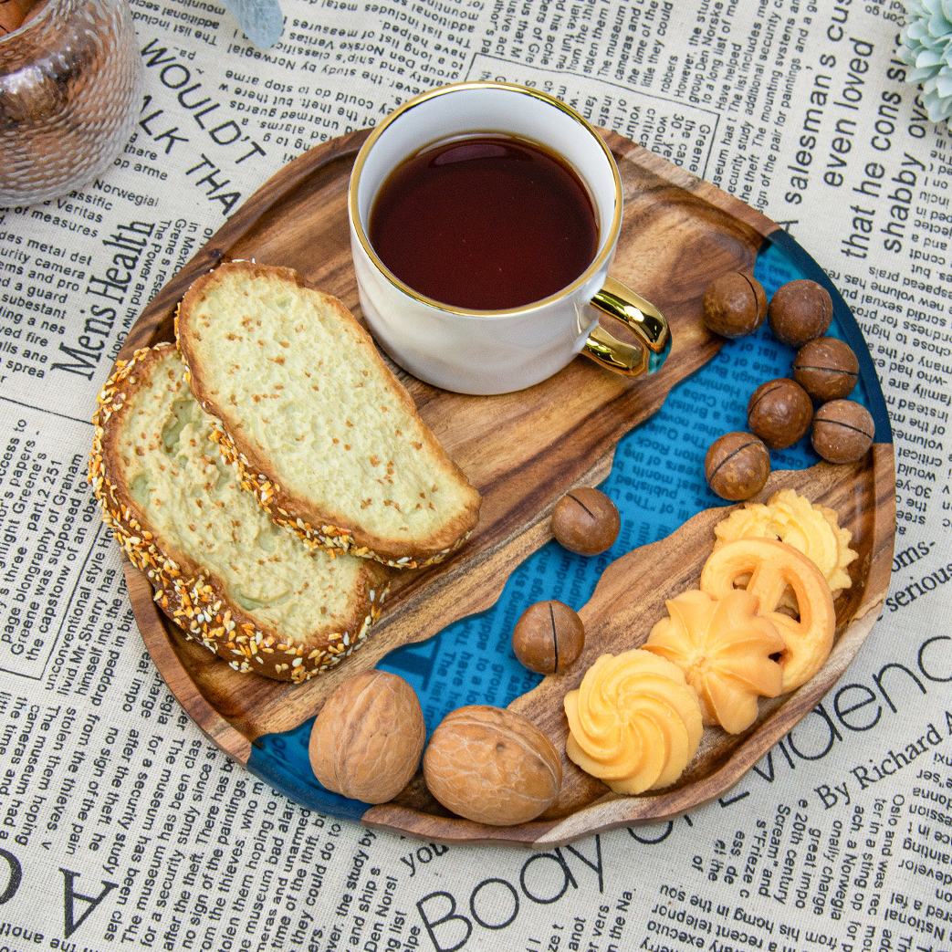 Handcrafted Wooden and Resin Tray Elegant Stylish Durable Resin Acacia Wood Serving Tray Serving Platter
