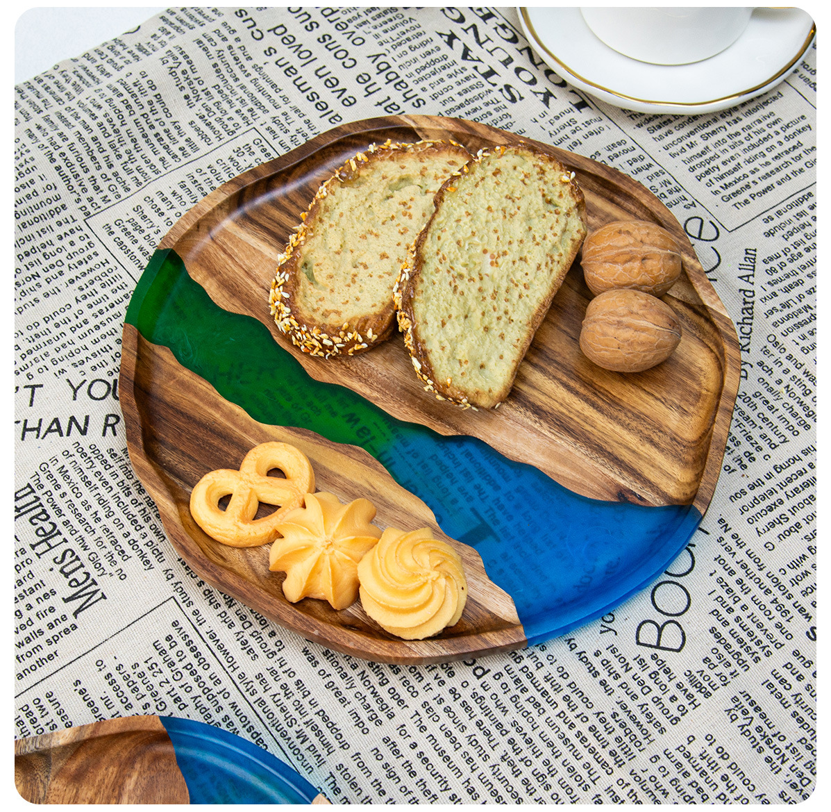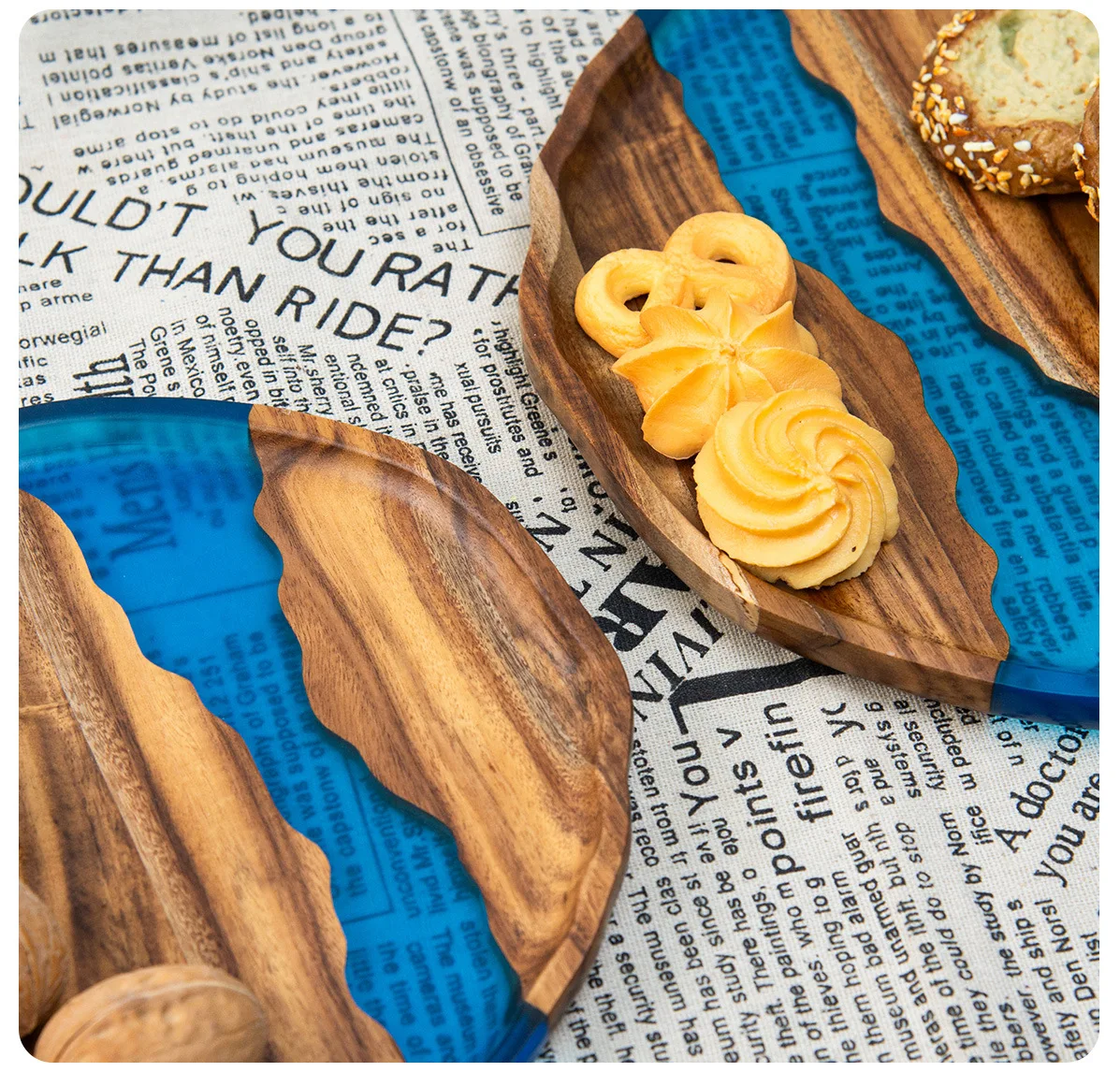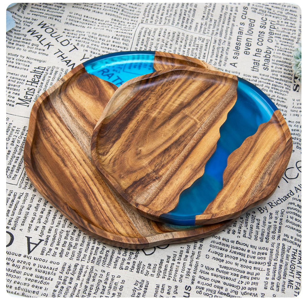 Handcrafted Wooden and Resin Tray Elegant Stylish Durable Resin Acacia Wood Serving Tray Serving Platter