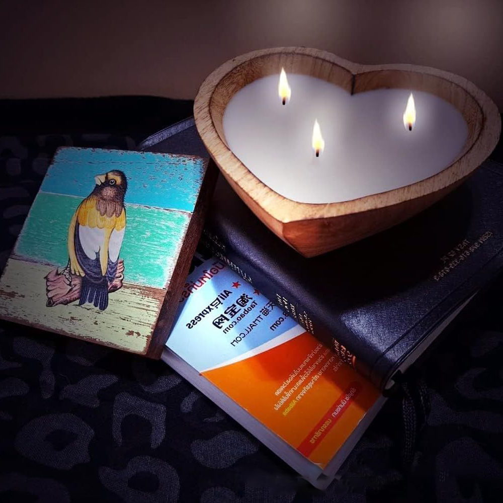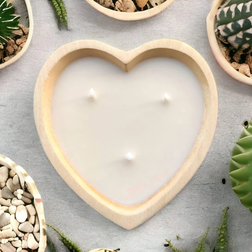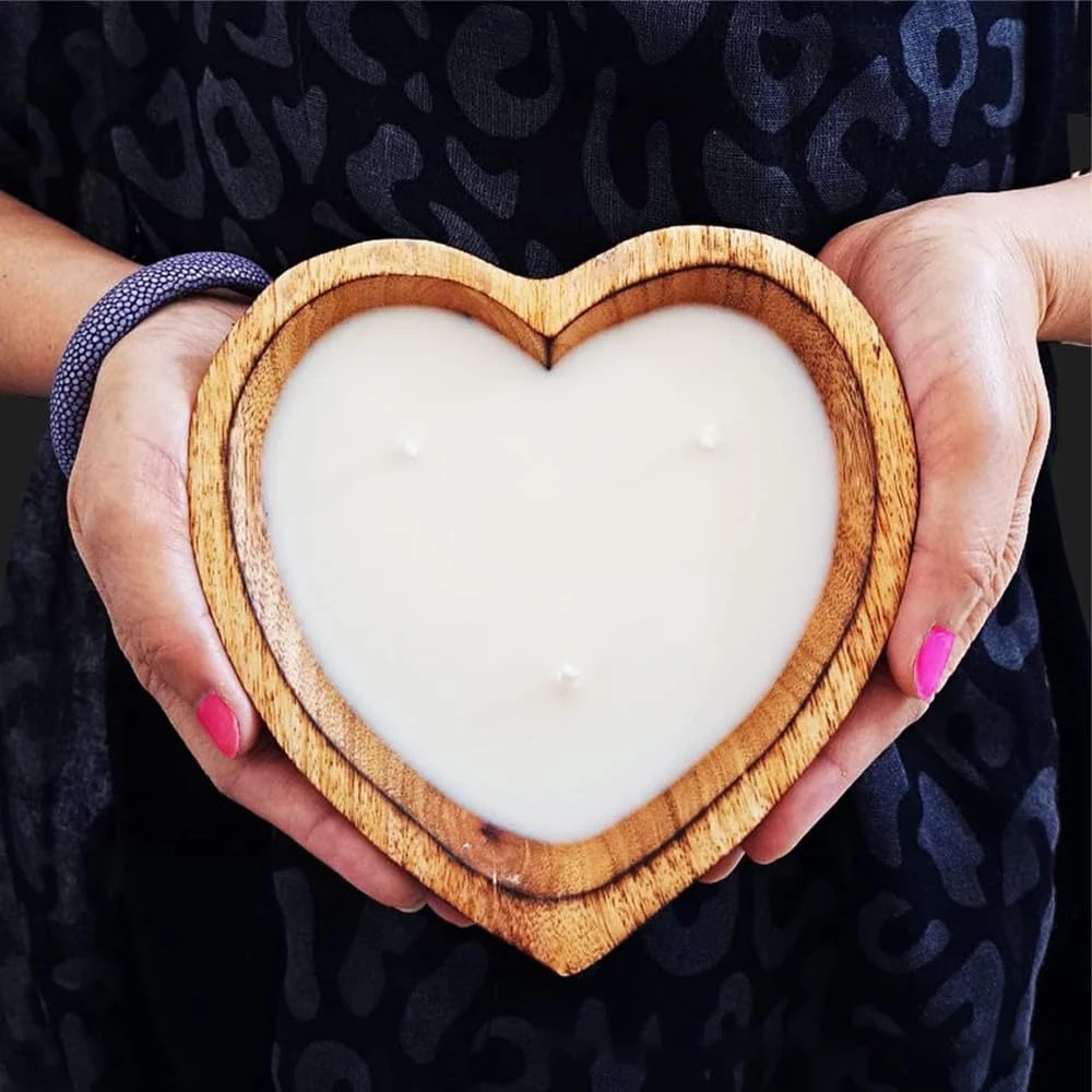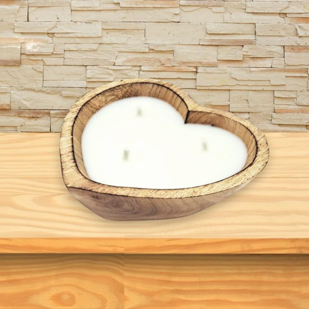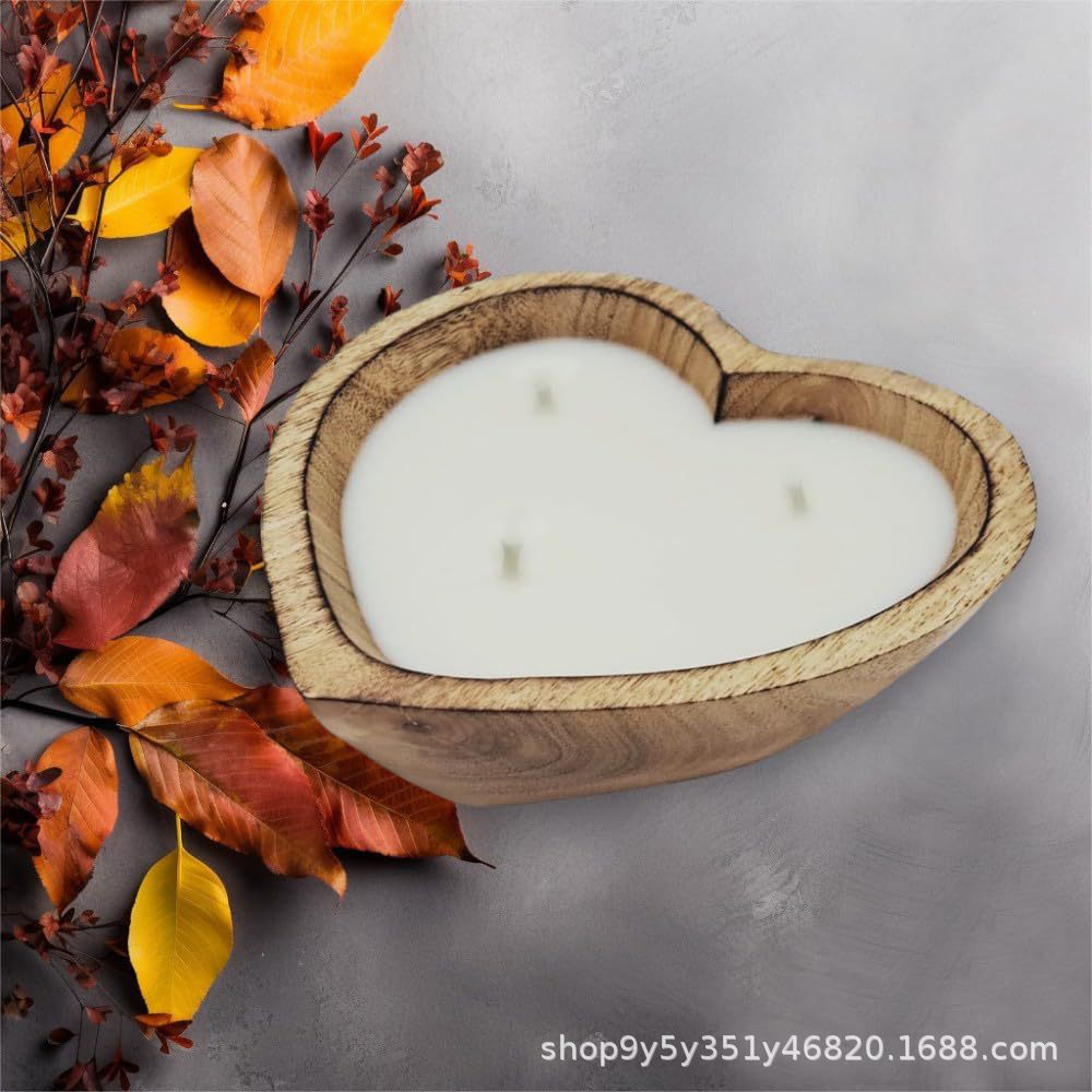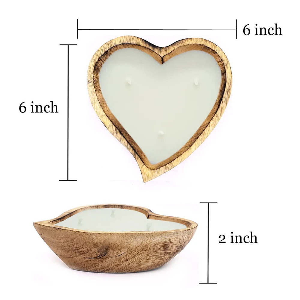Heart-Shaped Wooden Bowl Candle 3-Core Soybean Wax for Living Room for Anniversary Engagement Wedding Birthday Valentine’s Day