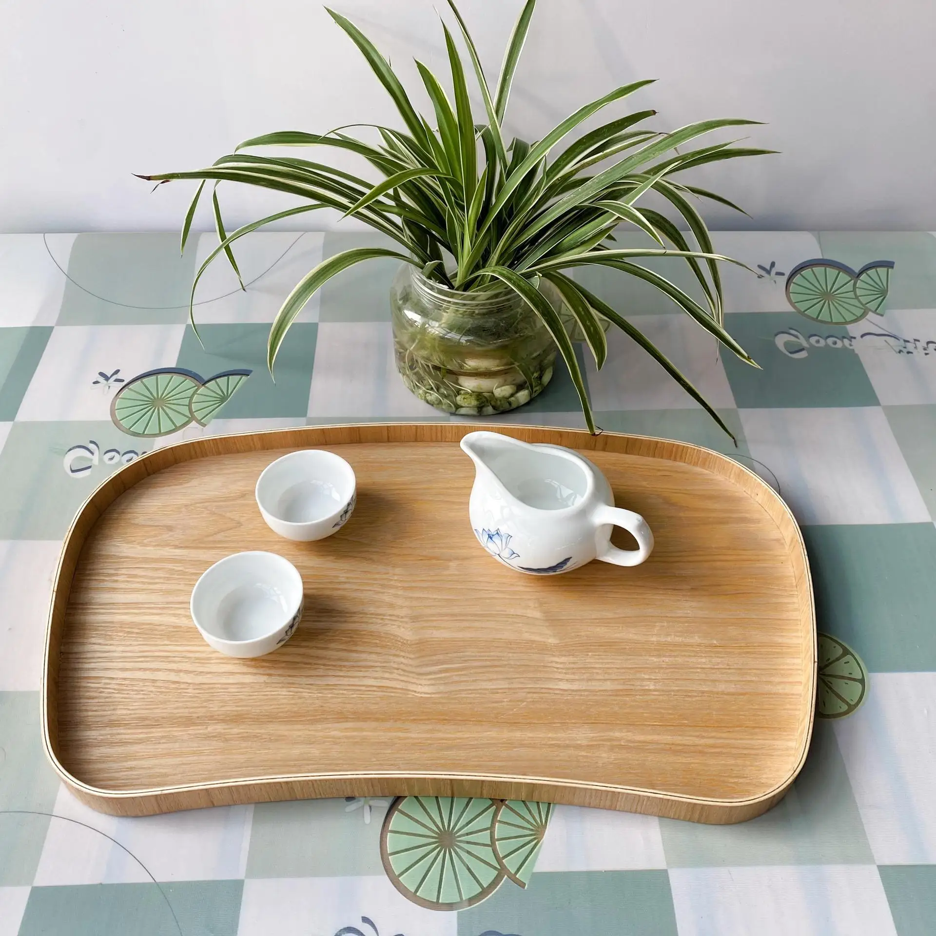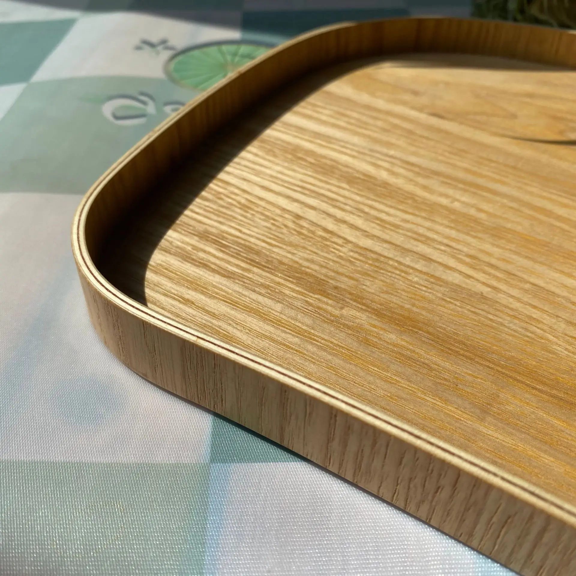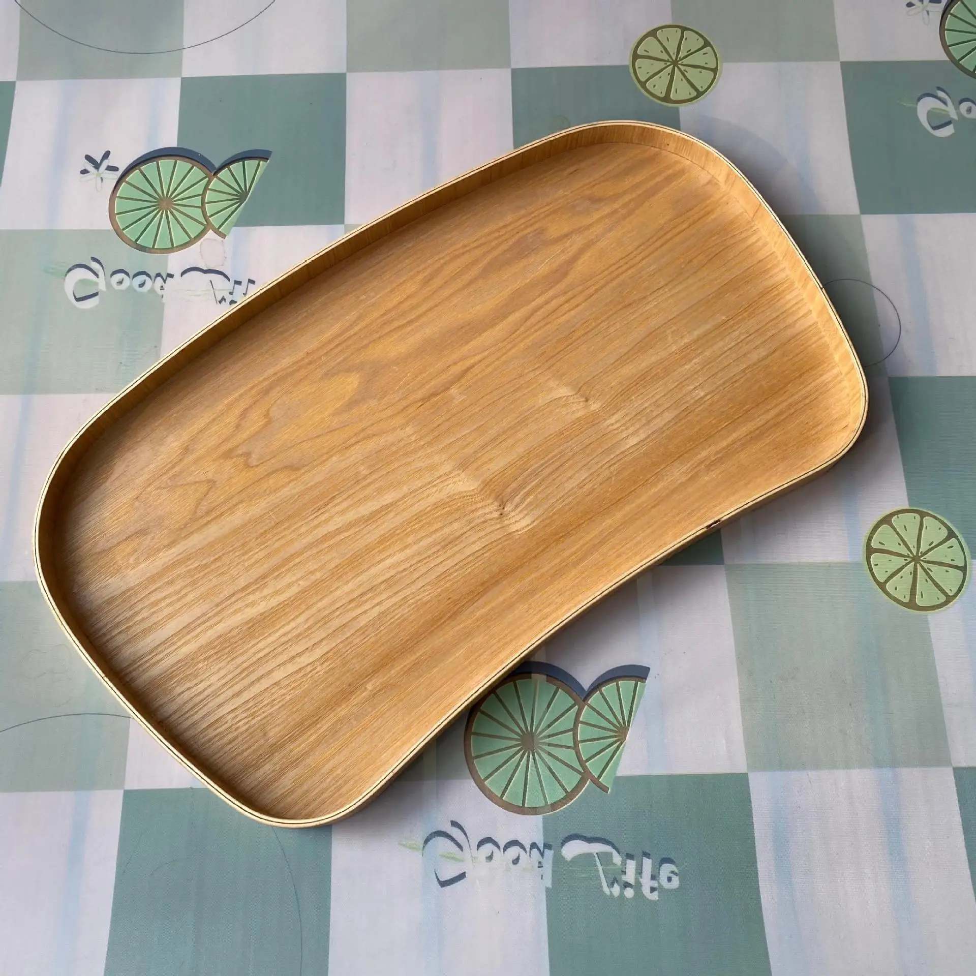 High Quality Japanese Style Ash Willow Bakery Cake Plate Bent Wooden Serving Tea Plywood Tray for Storage