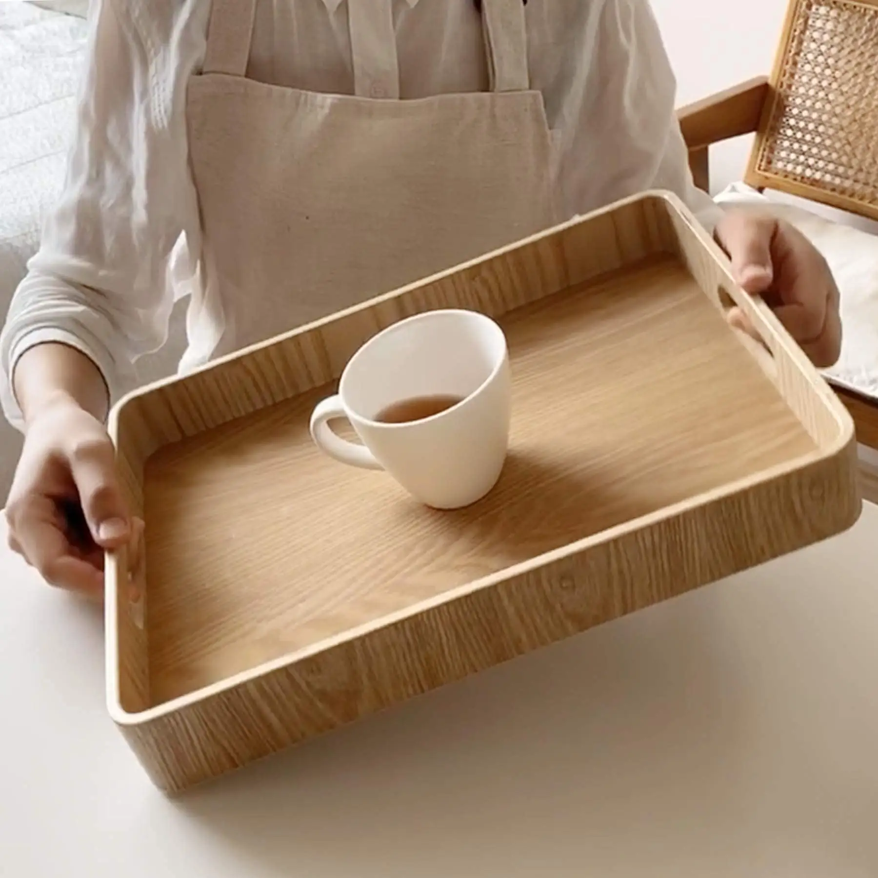 High Quality Rectangle Serving Tray with Non-Slip Handles Customized Natural Wood Plate Dish Willow Wood Decorative Pattern