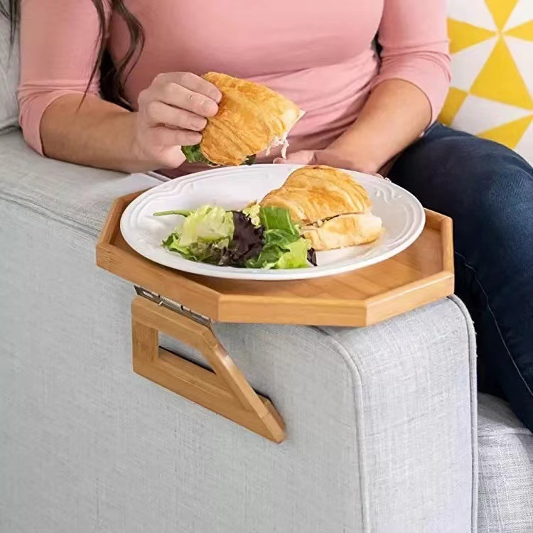 Hot Sale Bamboo Side Table Tray for Couch Arm with Rotating Phone Holder Living Room Lacquer Technique Couch Tray Table_clip on