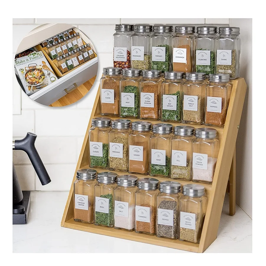 Hot Sale Multi-Purpose Bamboo Spice Rack Organizer for Kitchen Drawers Seasoning Rack Storage Racks