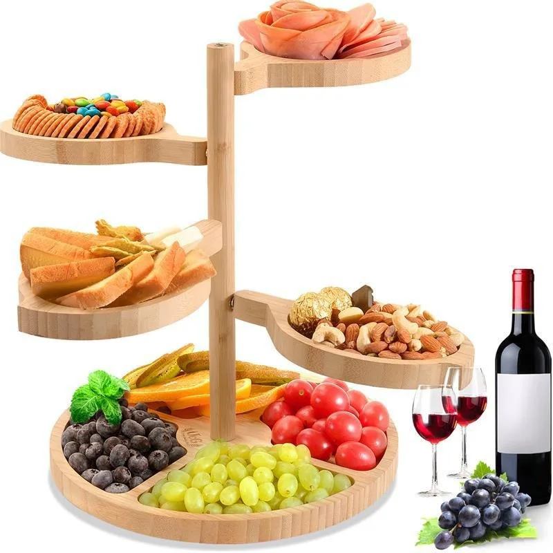 Hot Selling 5 in 1 Fruit Serving Platter Bamboo Cheese Board 360 Degree Swivel Multi-Functional Gift Set for Desks
