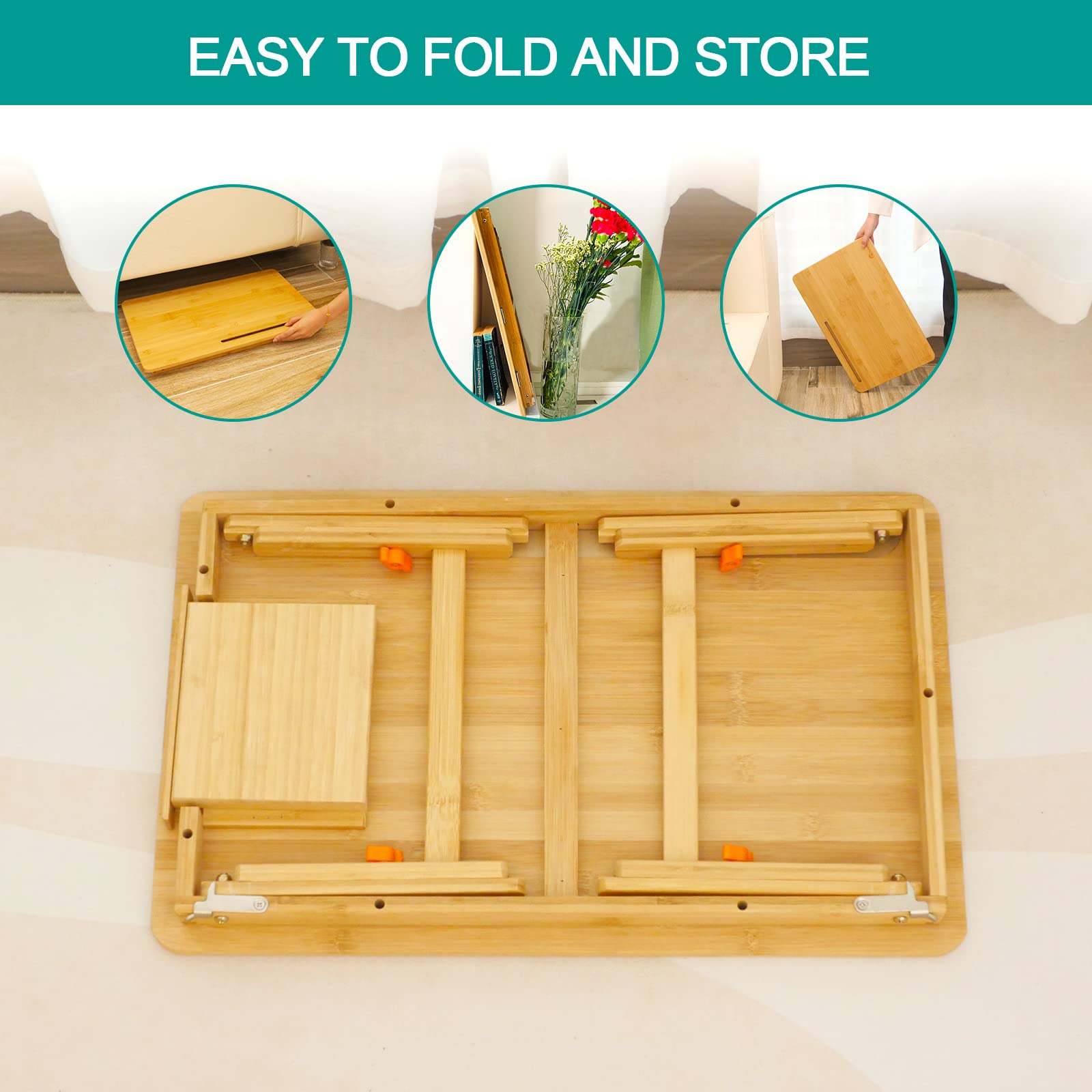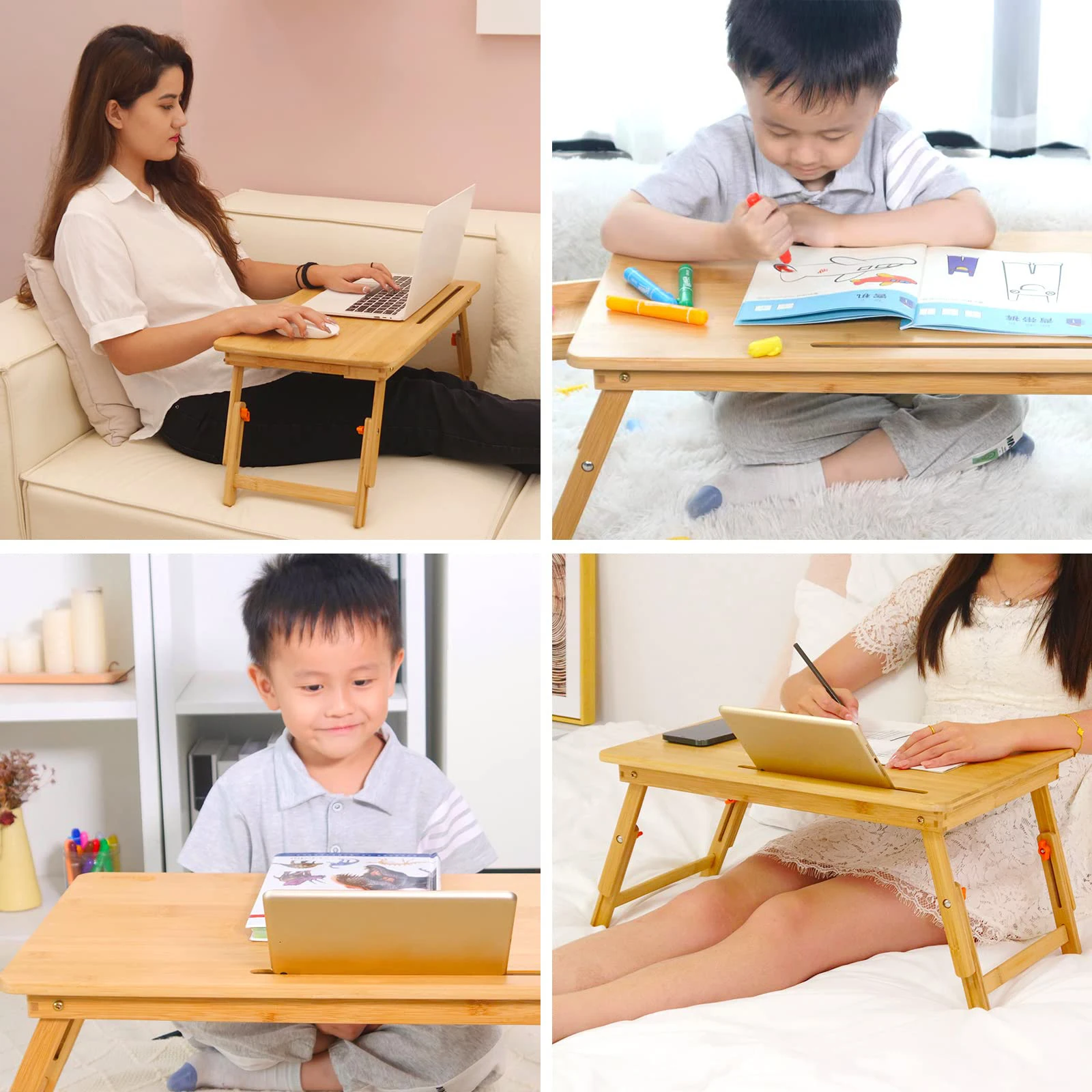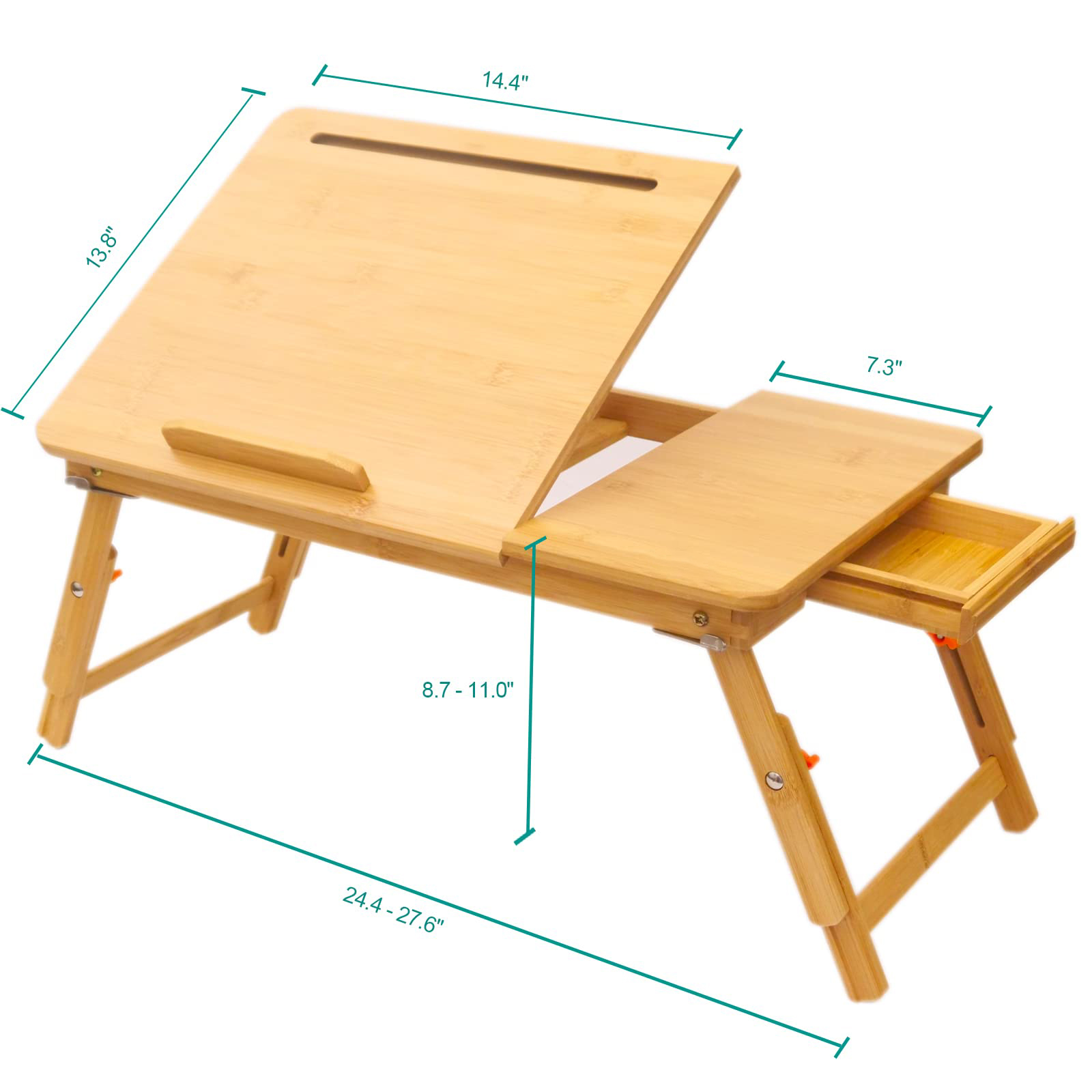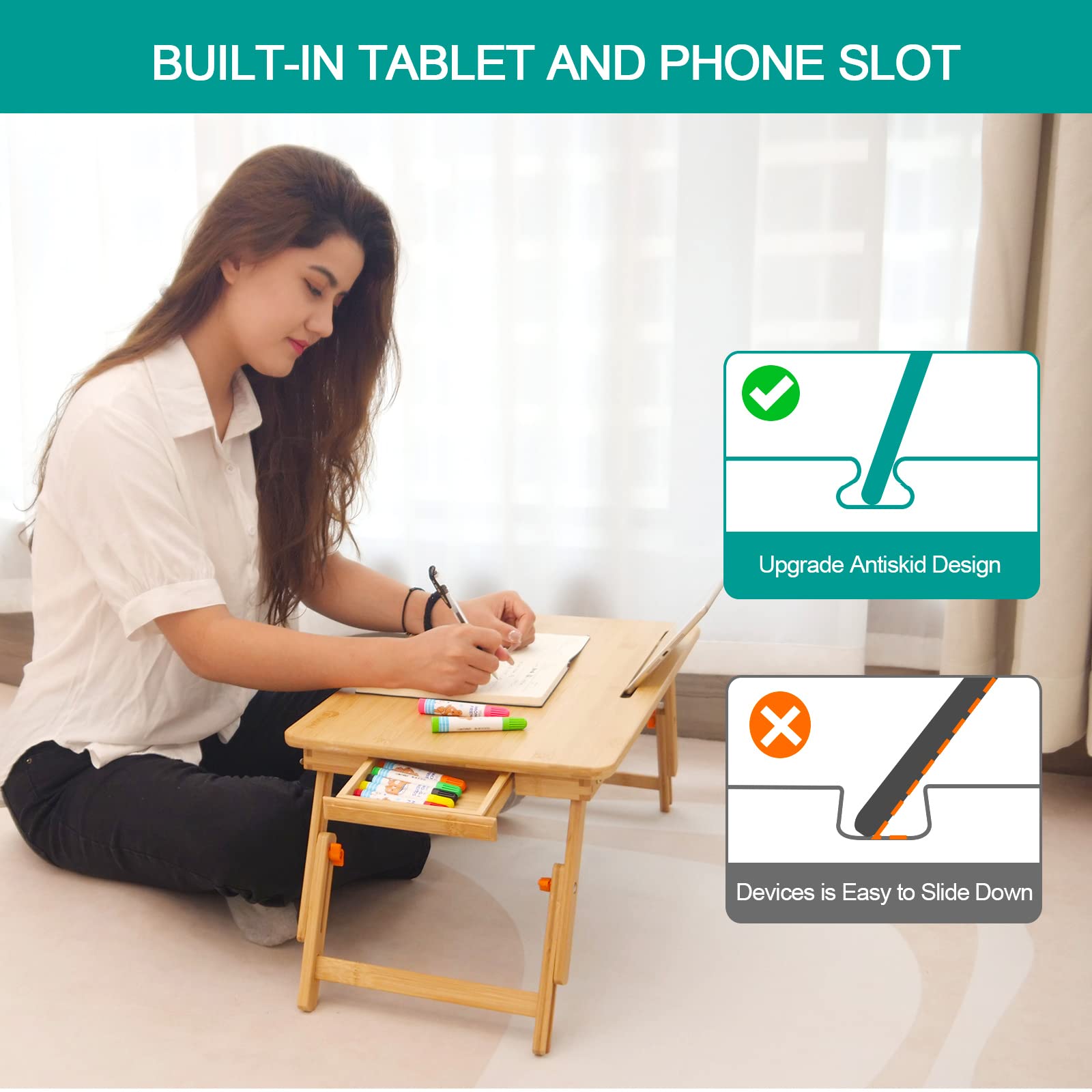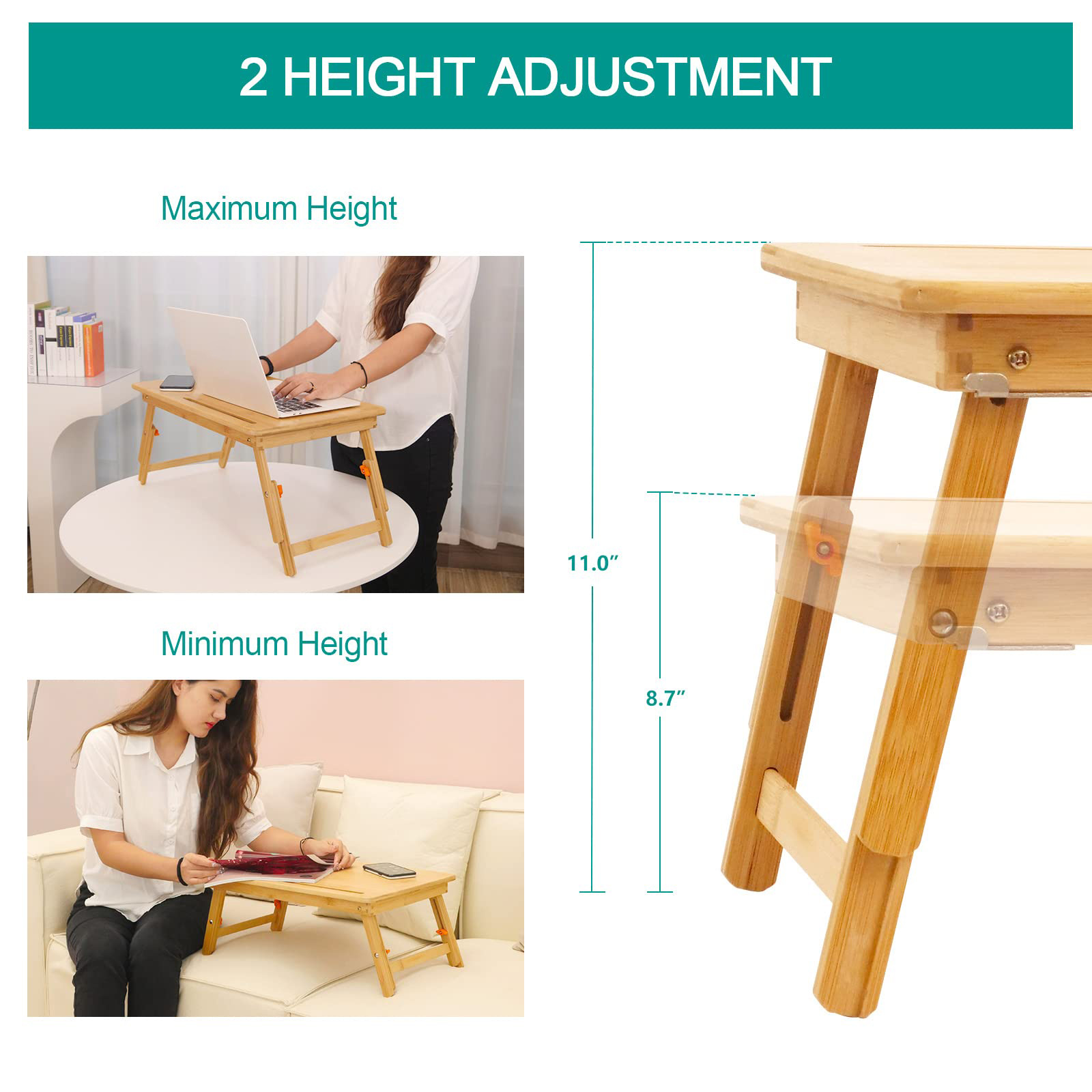 – Polishing: The corners of each lap bed table are polished. smooth and safe to touch.- Height-adjustable Table Legs: Each laptop bed table can be raised and lowered.- Small storage cabinet + Card slot for Pad design + Non-slip small wooden board+ Fixed panel design