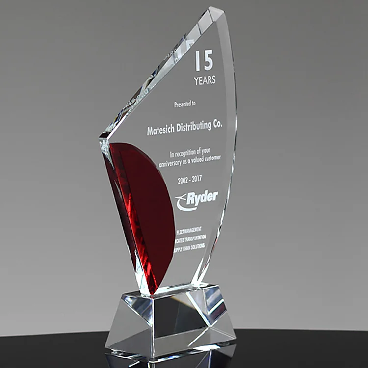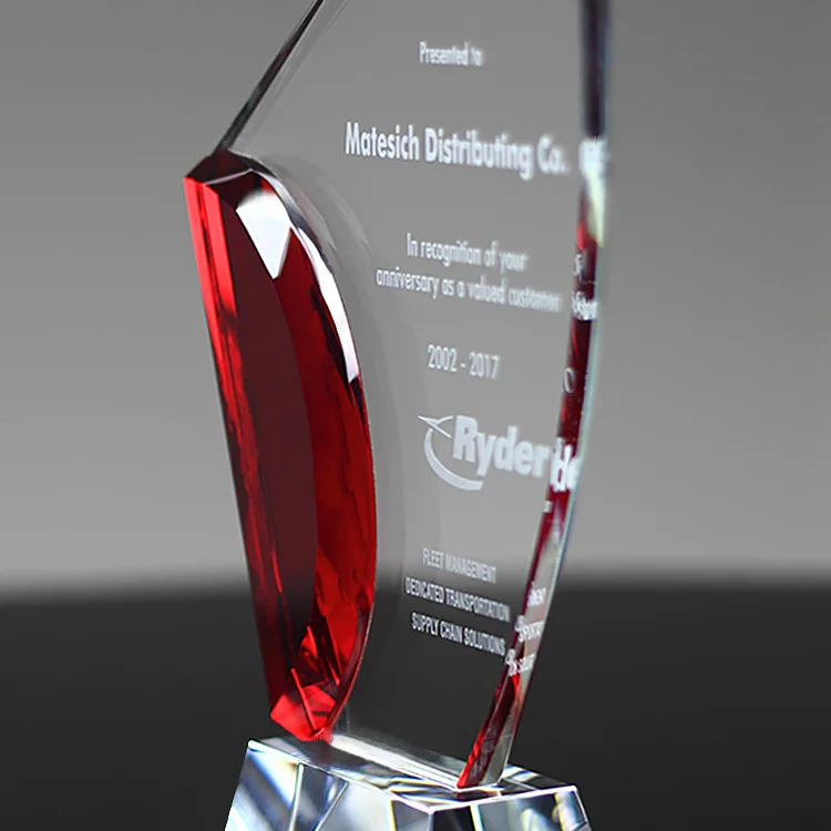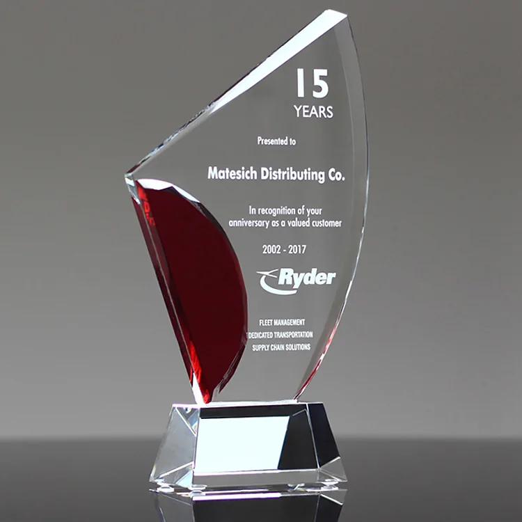 Hot Selling Crystal Trophy Blank Crystal Award Trophy Custom 3d Laser Engraving Red Crystal Trophy Awards