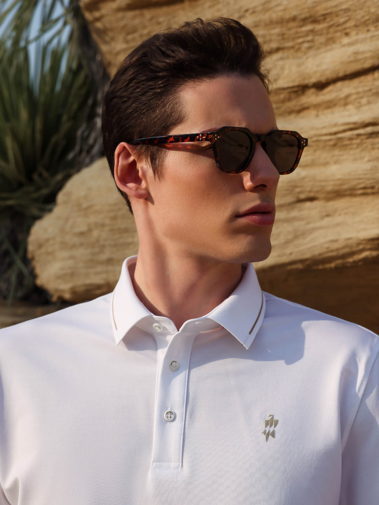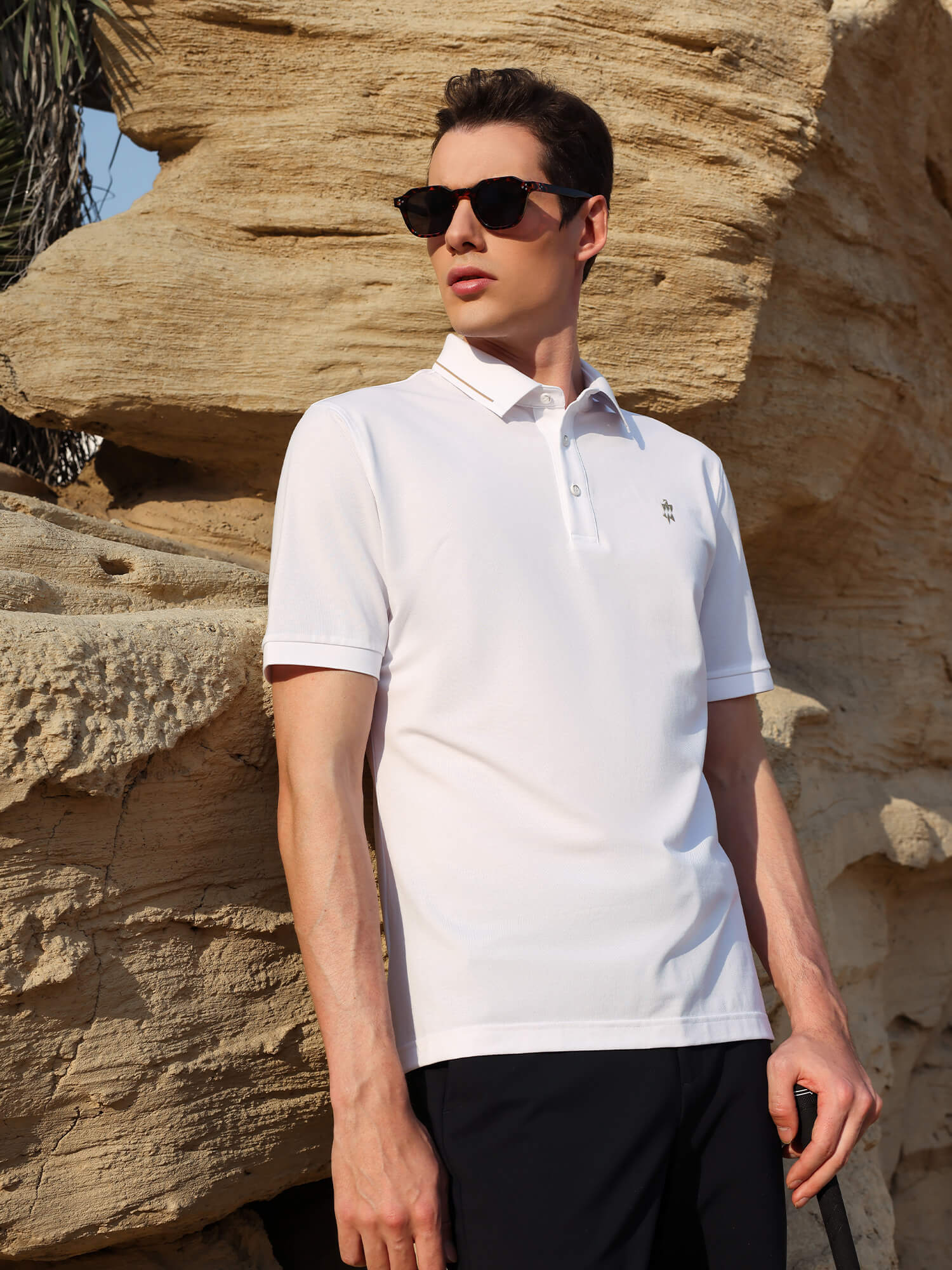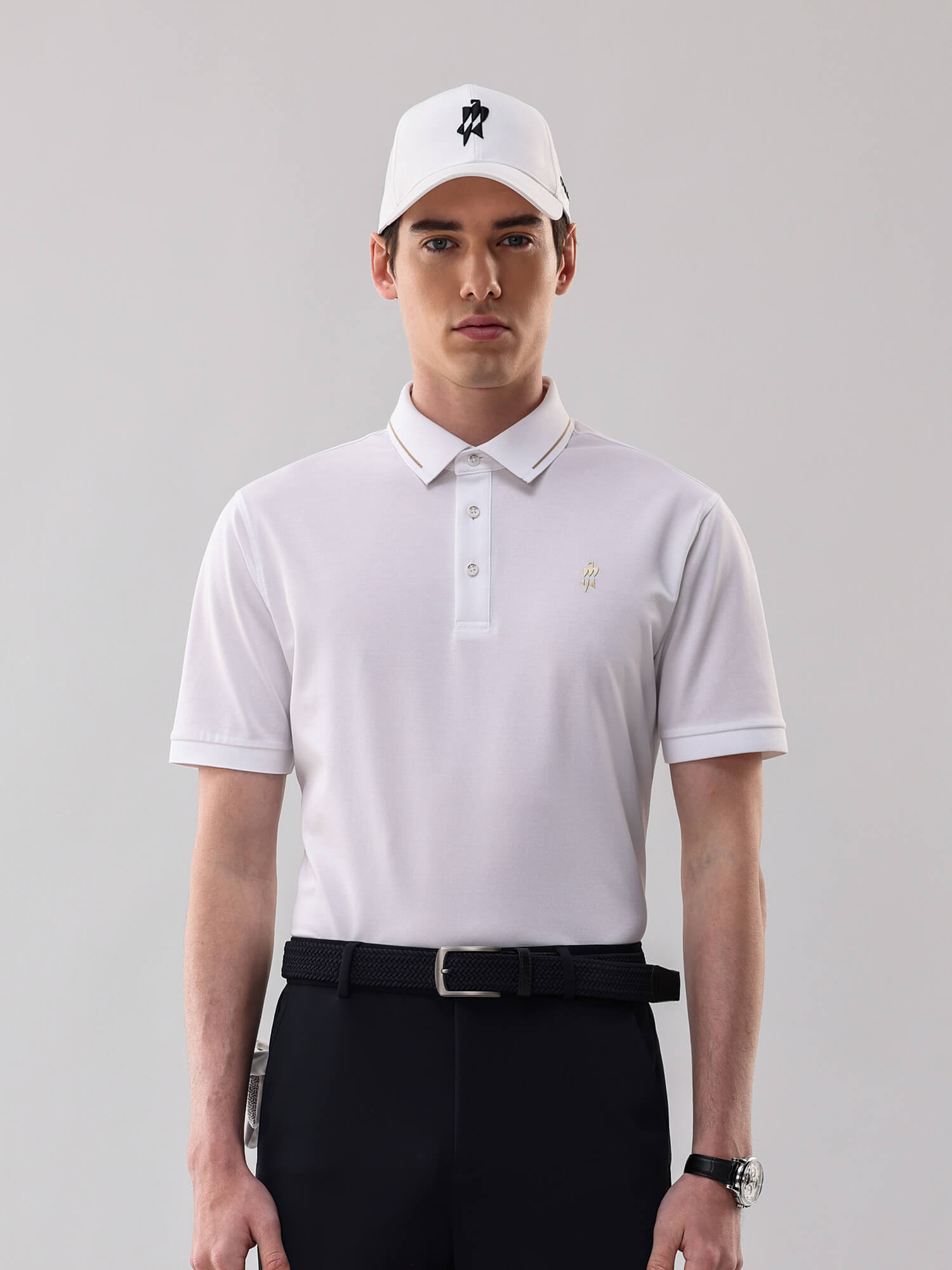 Be the first to review “Ivory White High-Stretch Gold Collar Polo” Cancel reply