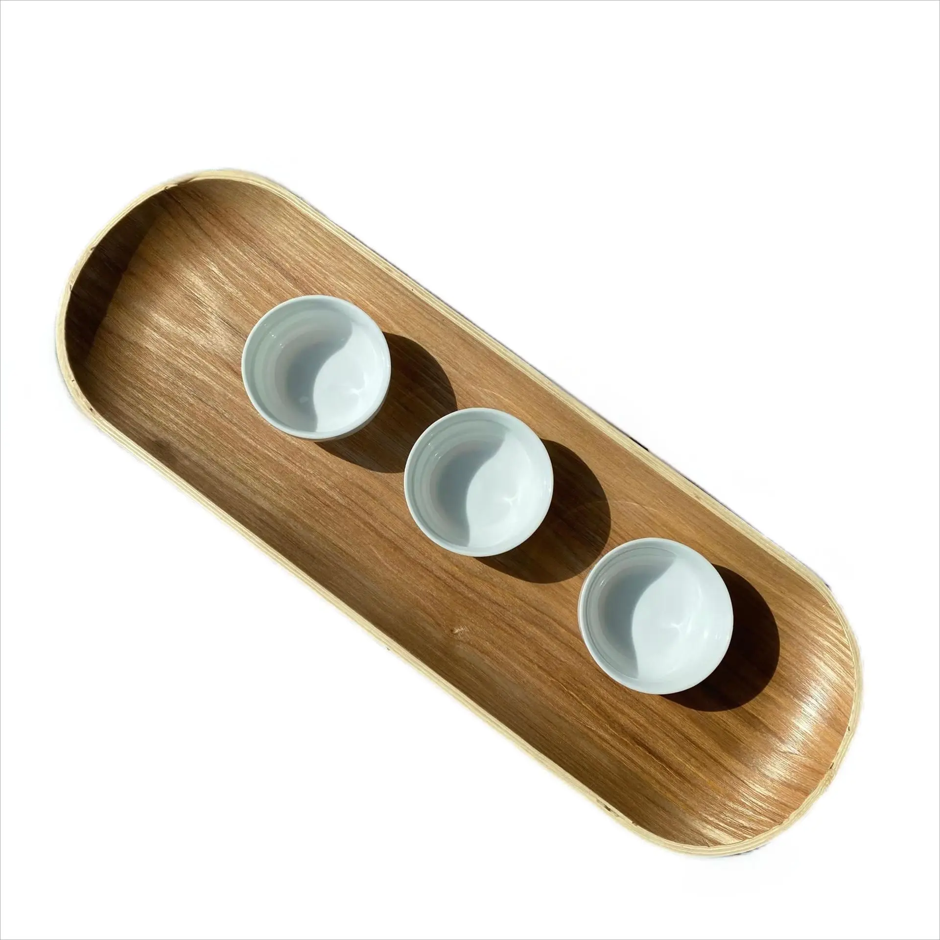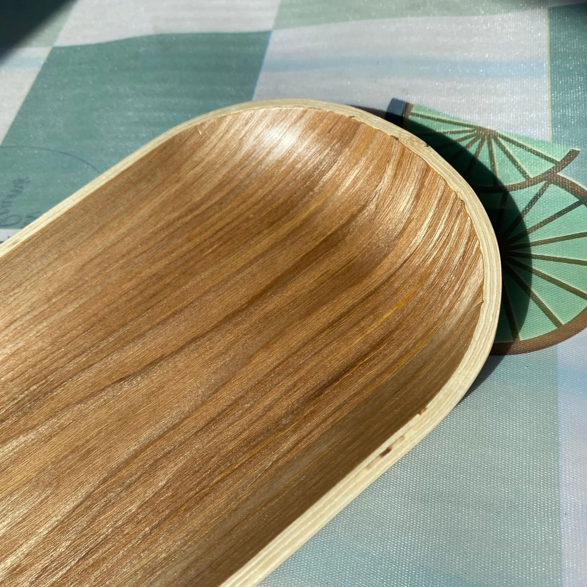 Japanese Style High Quality Ash Willow Bakery Cake Plate Bent Wooden Serving Tea Plywood Tray for Living Room Kitchen