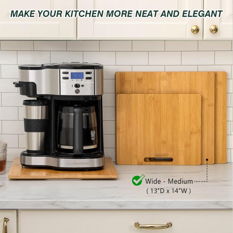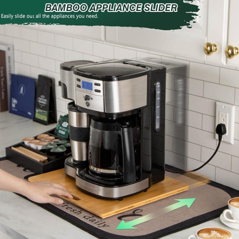 Product Name | Bamboo Appliance Slider. Sliding Tray for Coffee Maker. Kitchen Countertop Appliance Rolling Tray. Coffee Pot Slider Tray with Rubber Wheels. | |||||