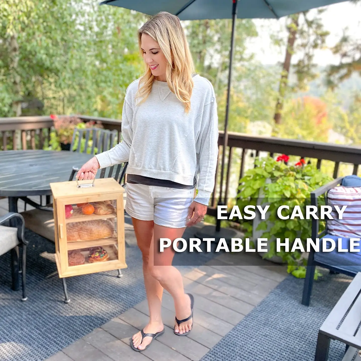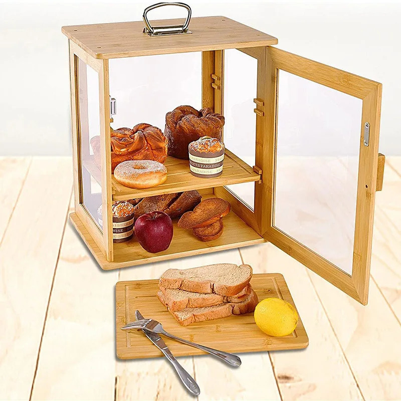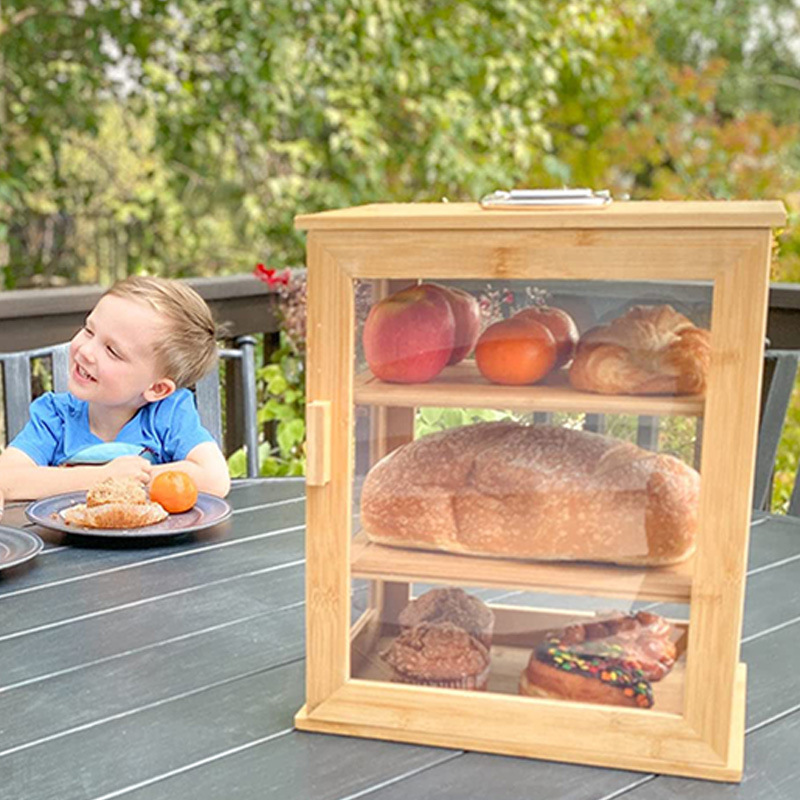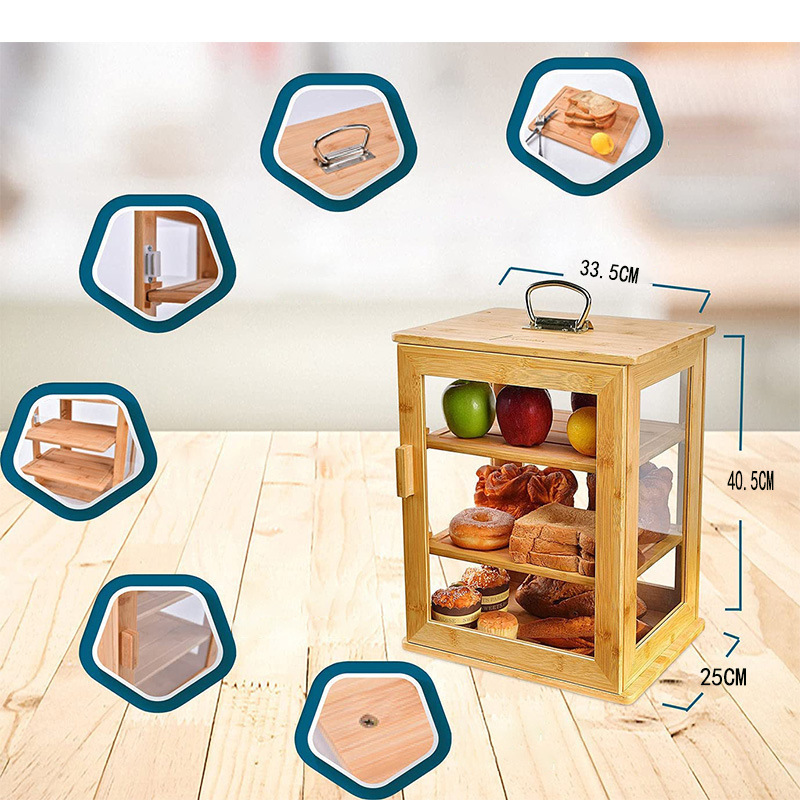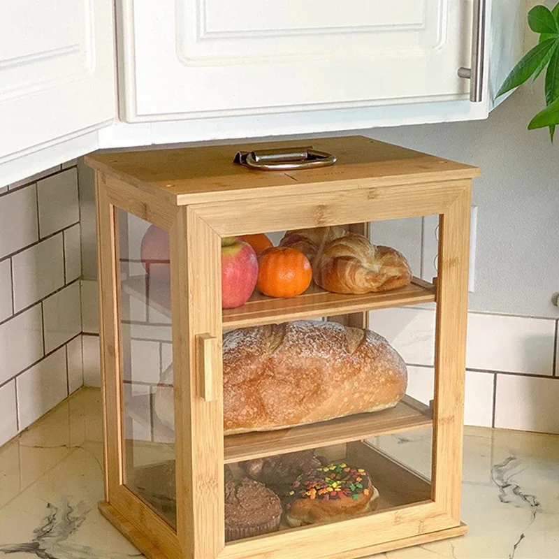 Large 3-Layer Portable Bamboo Bread Box with Clear Windows and Adjustable Shelves Kitchen Accessories for Food Storage