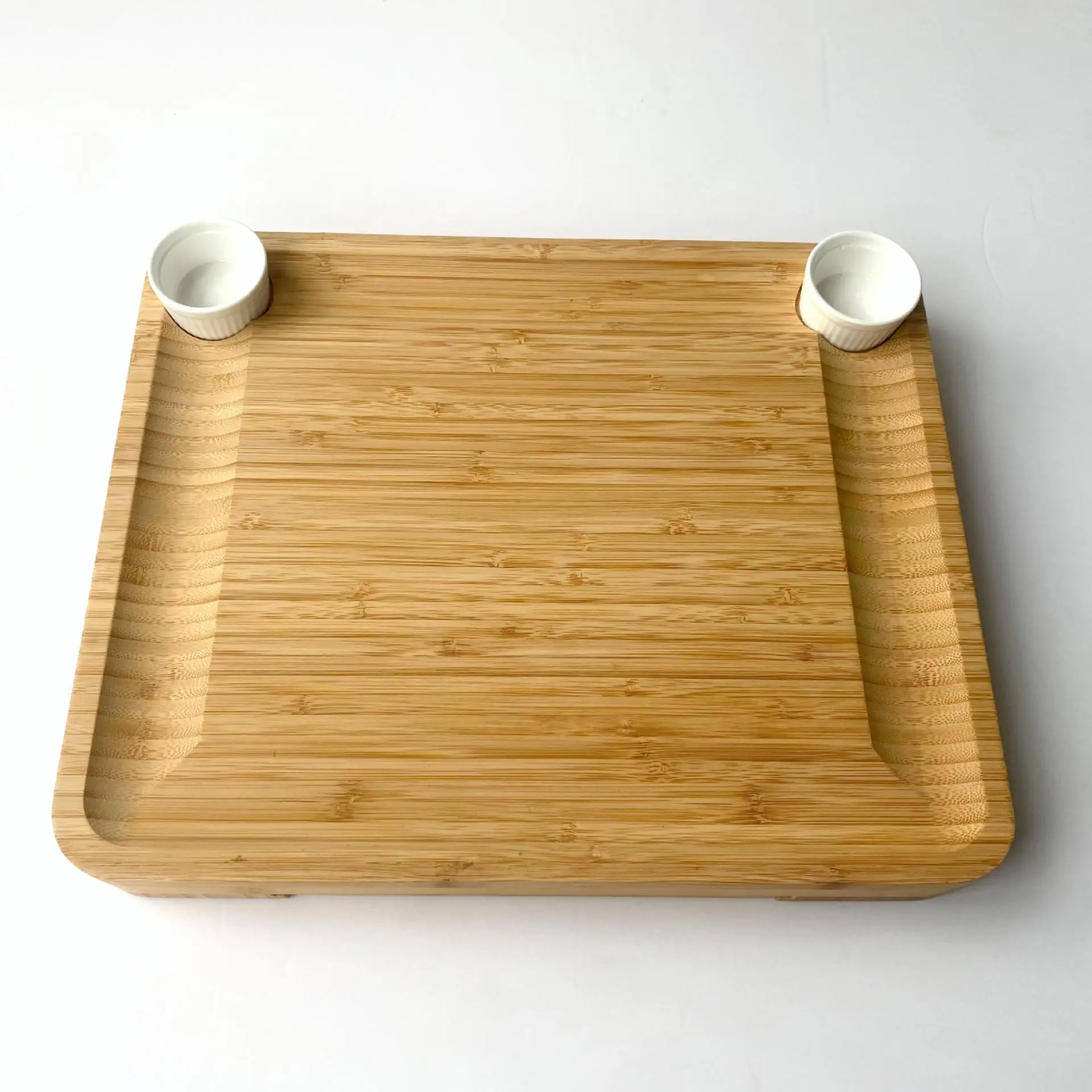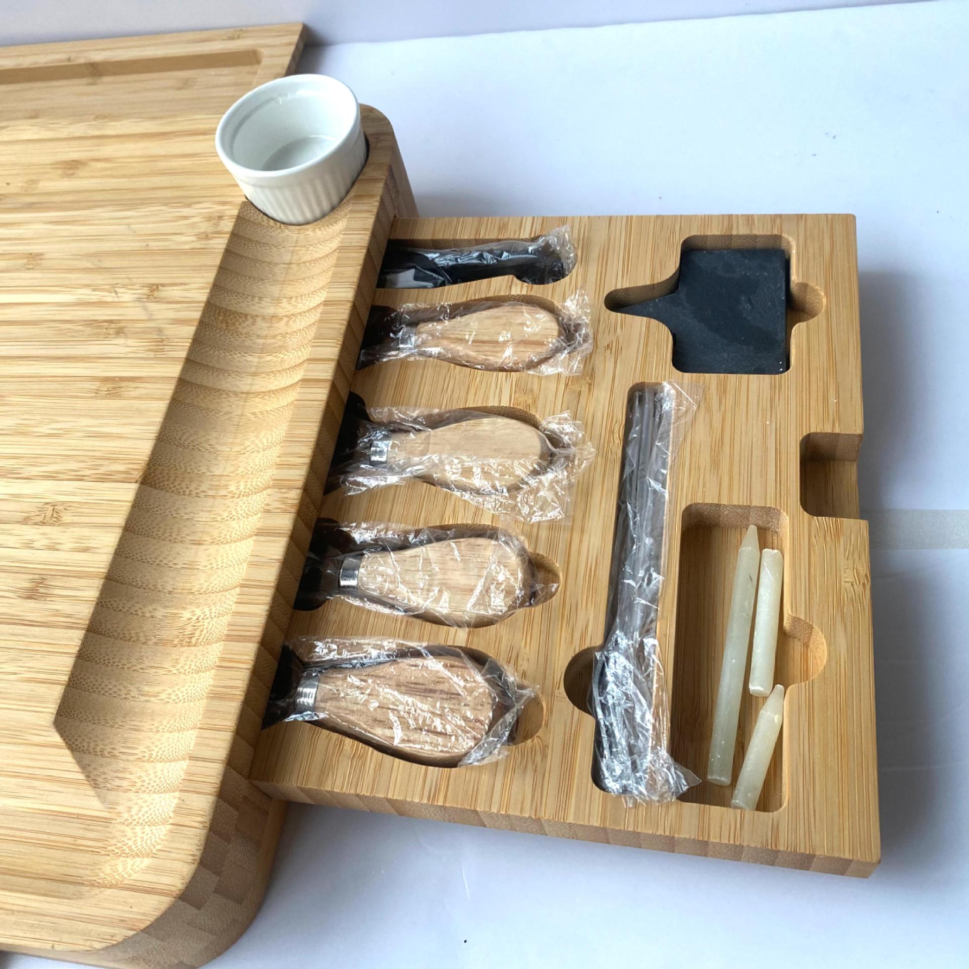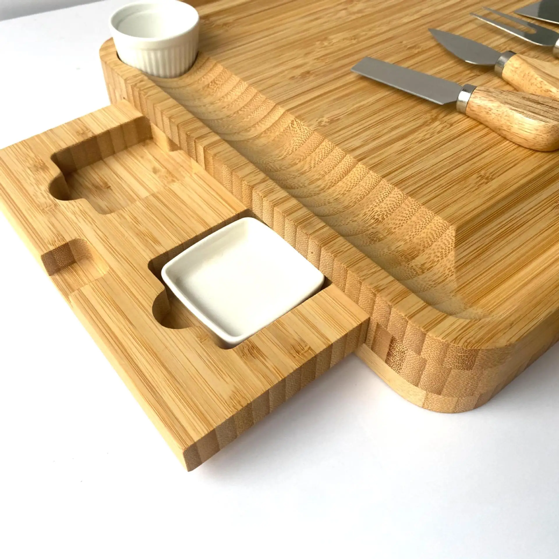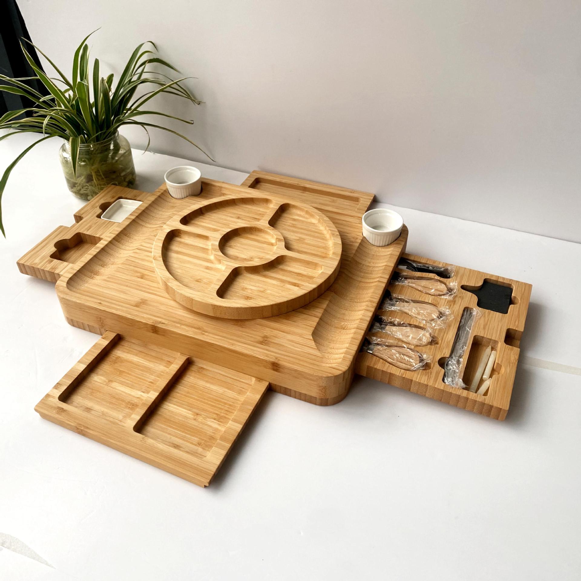Large Bamboo Cheese Cutting Board Set with Hidden Slide Drawers Square Wood Charcuterie Platter Disposable Features Knife Set