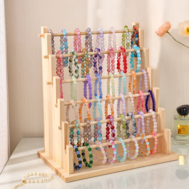 Large Capacity Wooden Jewelry Rack Display 4-5 Layers for Bracelet Bangle Detachable Watch Storage Holder