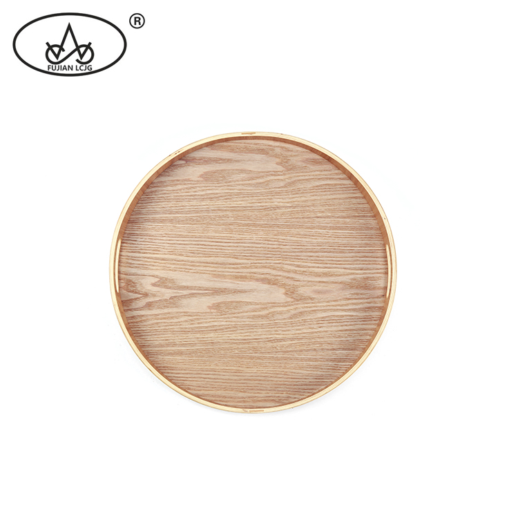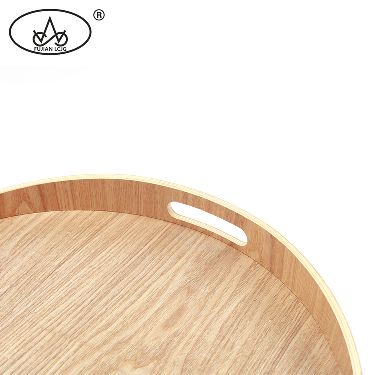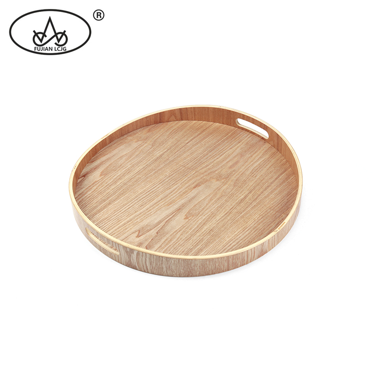 Laser Cutting Radian Shape Round Willow Wooden Serving Tray With Handle