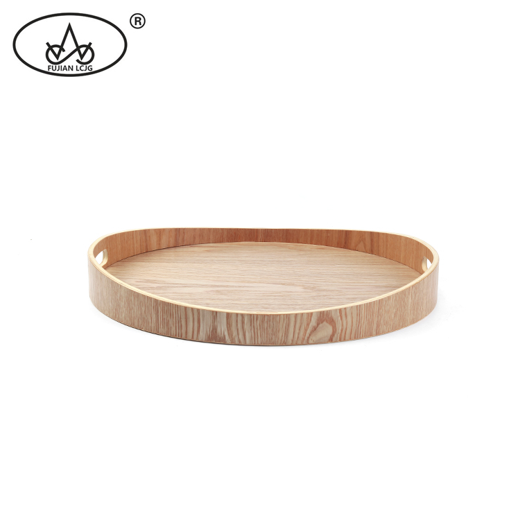 Laser Cut Radian Shape round Willow Bent Wooden Serving Tray with Handle for Kitchen Bathroom Living Room Desk Lacquer Technics