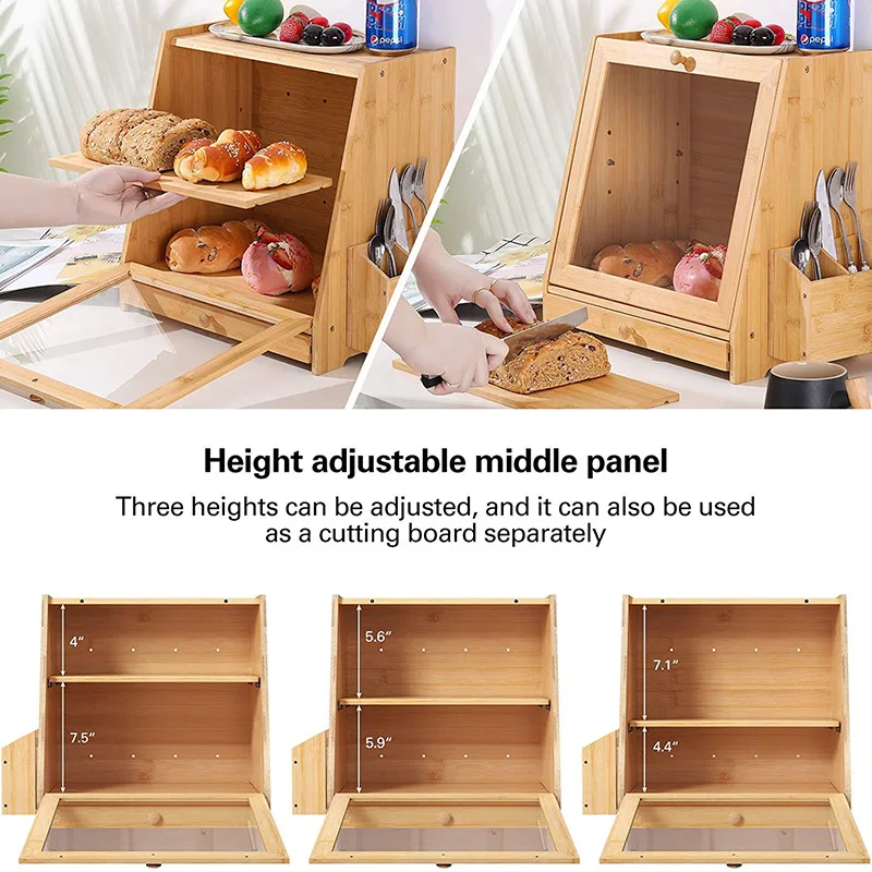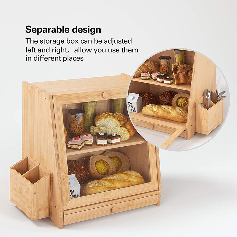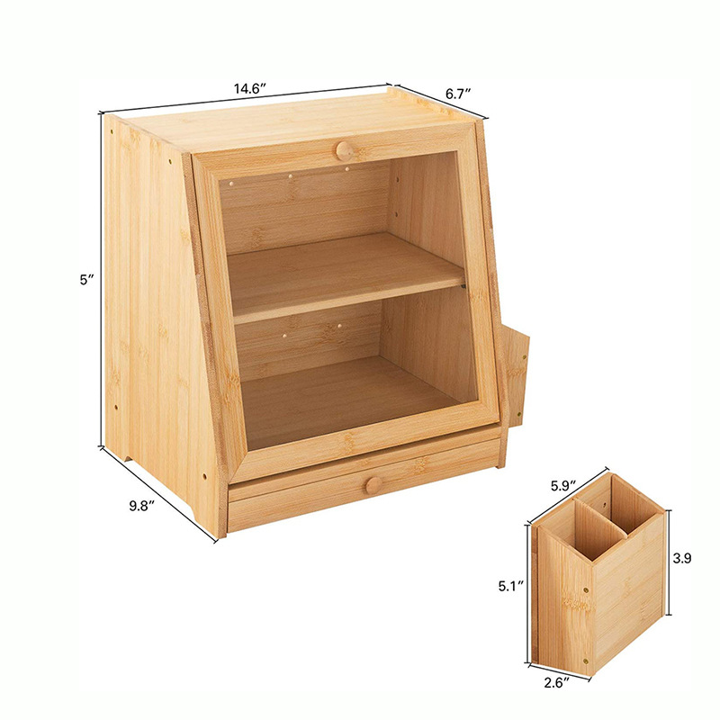 Product Name | Low MOQ Bamboo Wooden Bread Box Large Bread Container Double Layer Bread Storage with Clear Windows | |||||