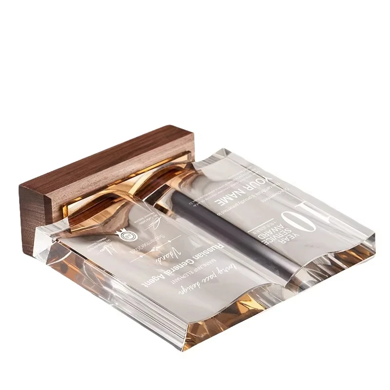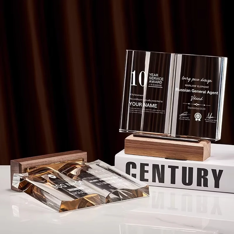 Manufacturer Wooden Crystal Trophy UV Printing Custom Crystal Plaque Book Shape Blank Crystal Trophy Awards