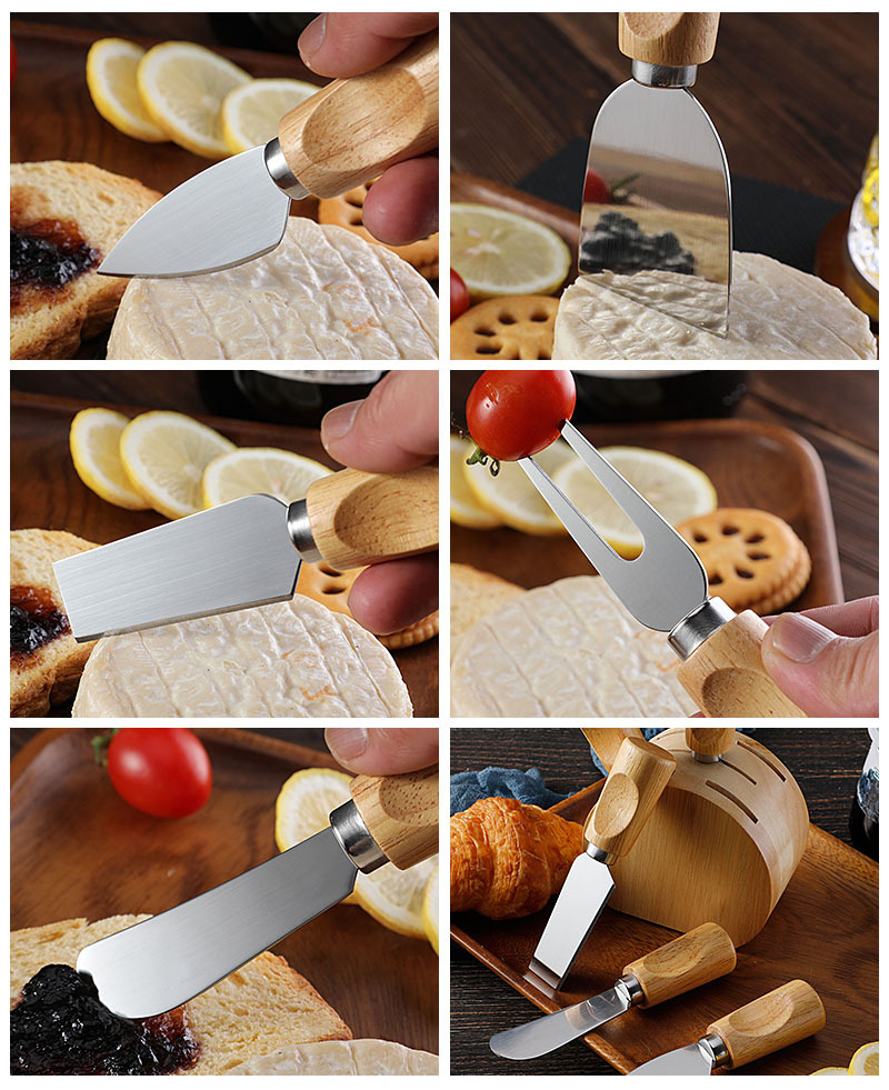Product Name | Wholesale Stainless Steel Cheese Tools Set Wooden Handle 6pcs/Sets Home Baking Tools Including Cheese Knife and Fork Home Use | |||||