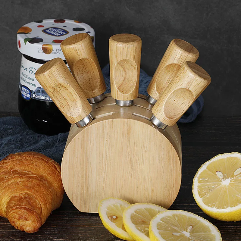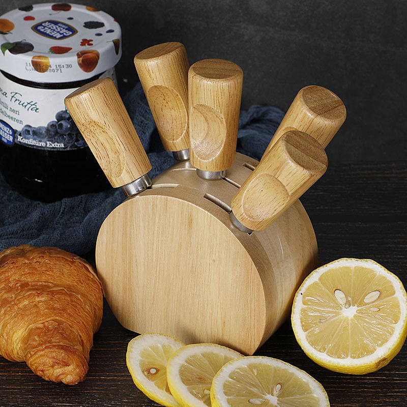 Mini Wedding Gift Serving Knife Holder Fork Utensil Set Plug-In Design Charcuterie Accessories for Home Kitchen Rubber Wood
