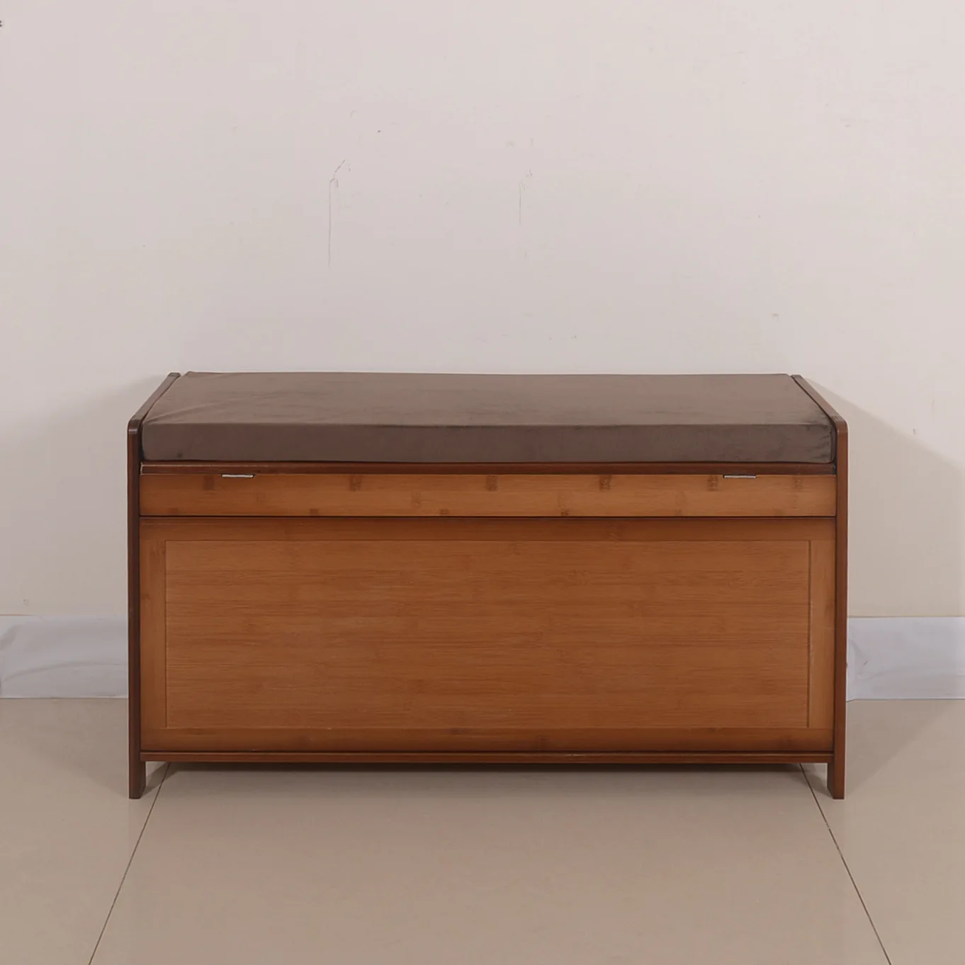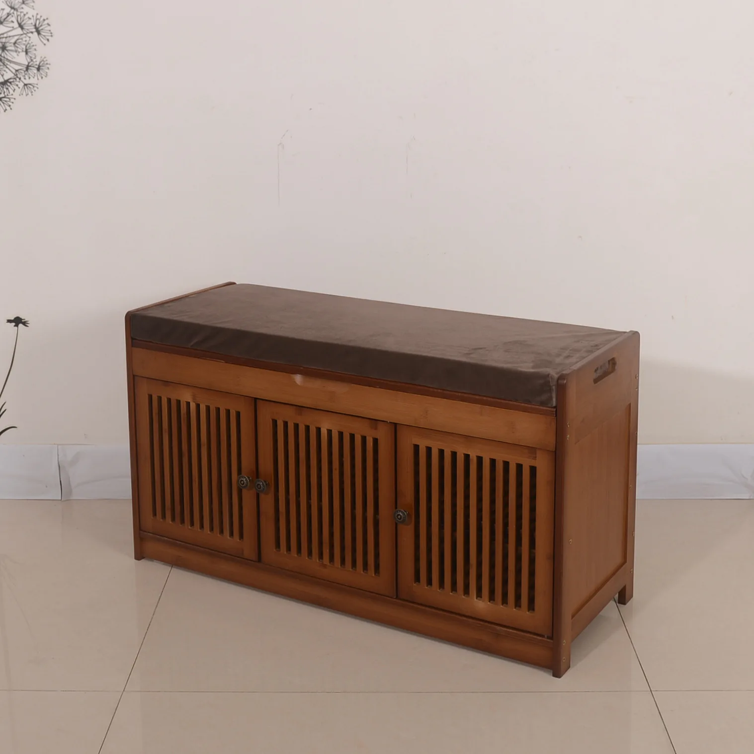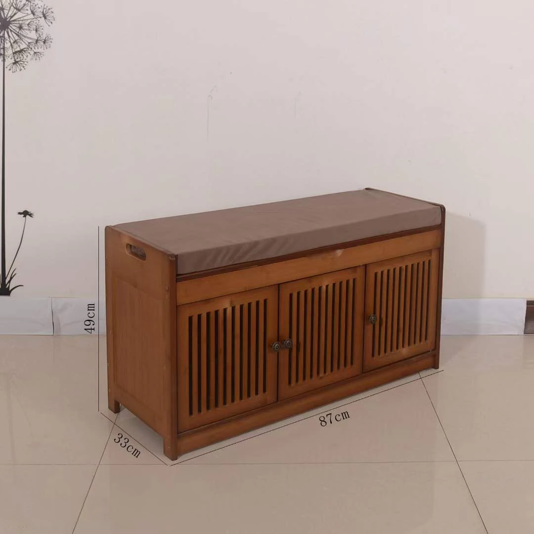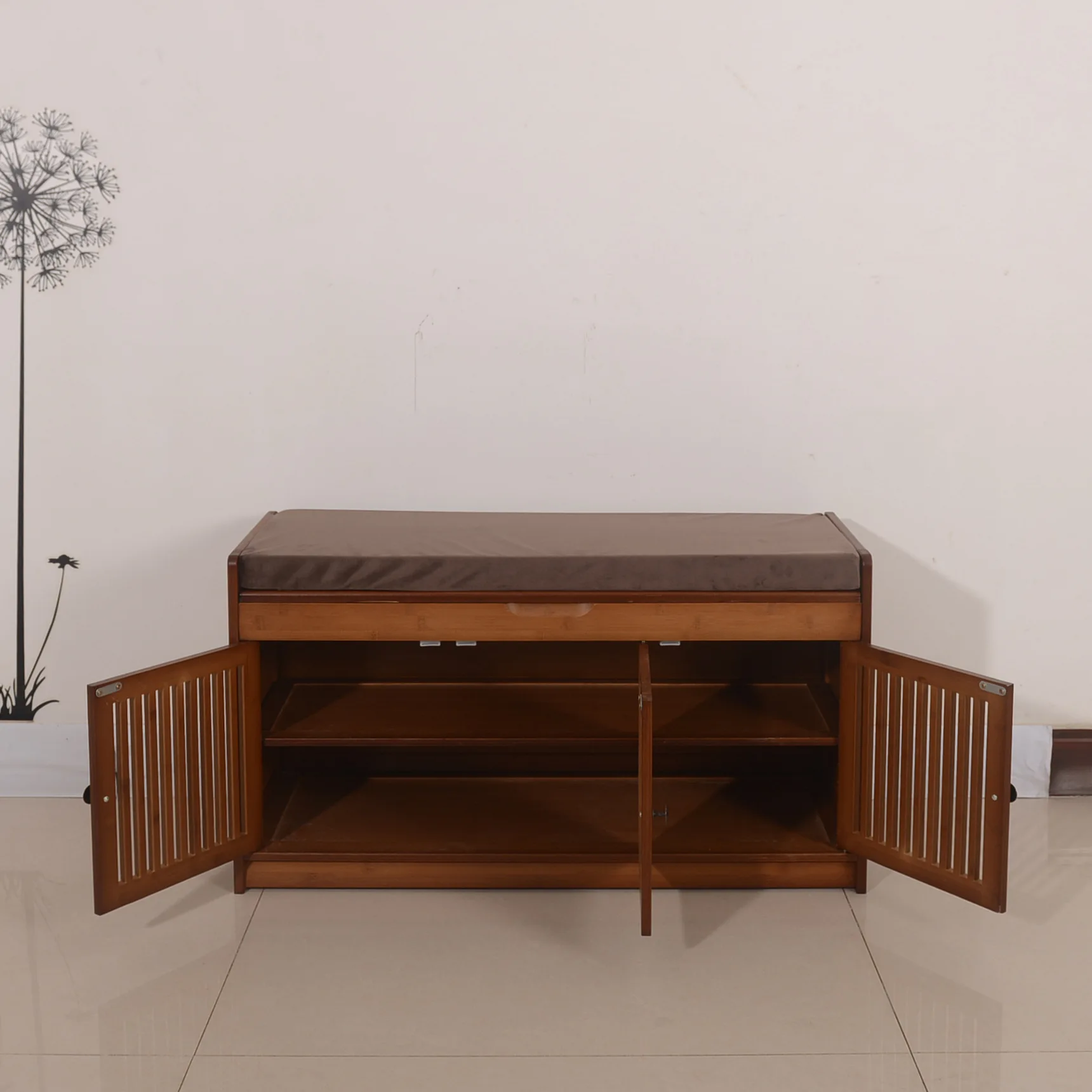 Modern 2-Tier Bamboo Shoe Storage Organizer with Cushion Seat Entryway Rack for Shoe Bench Organizing