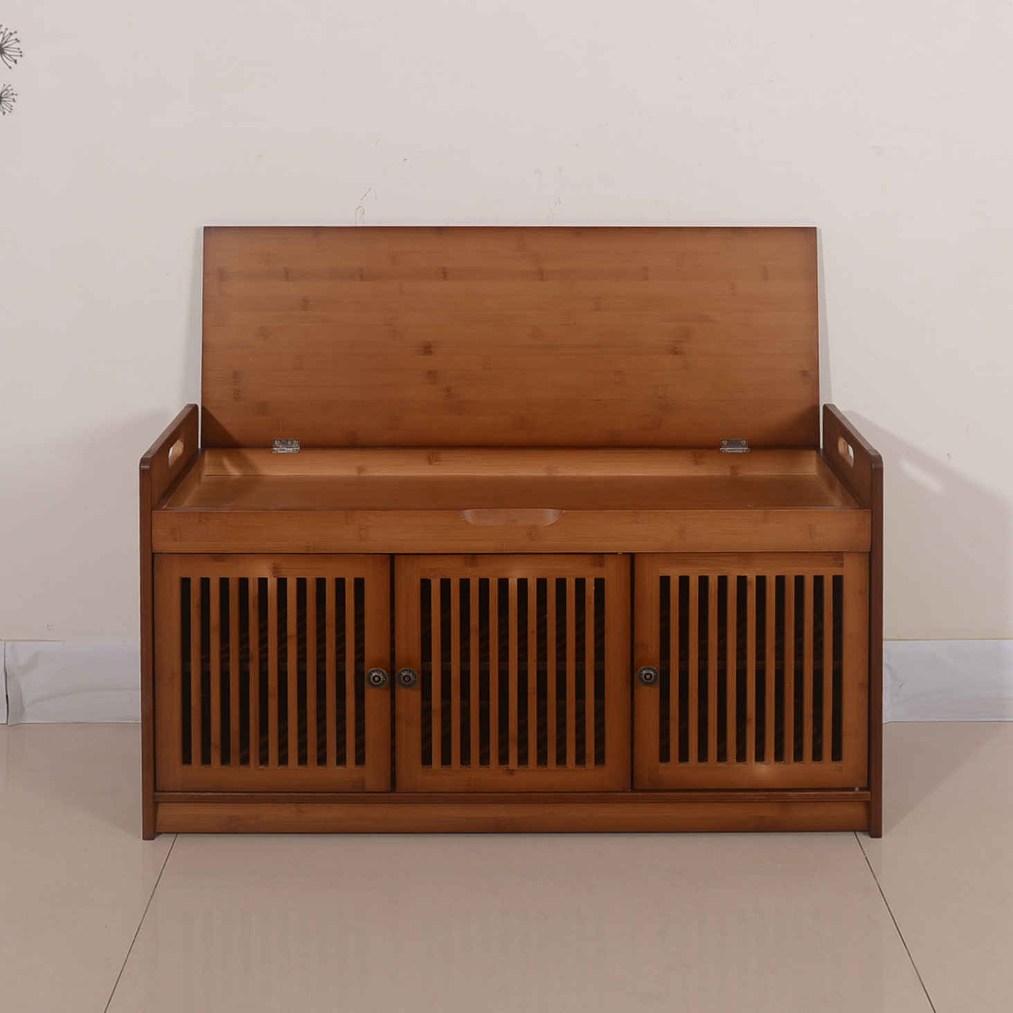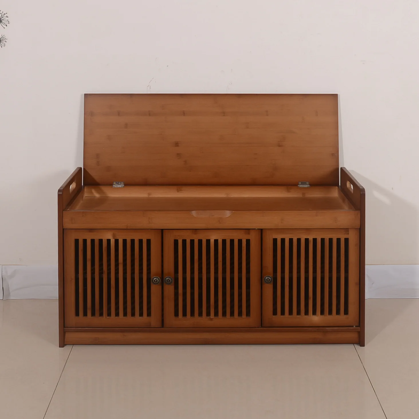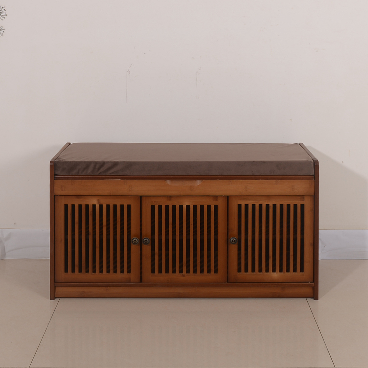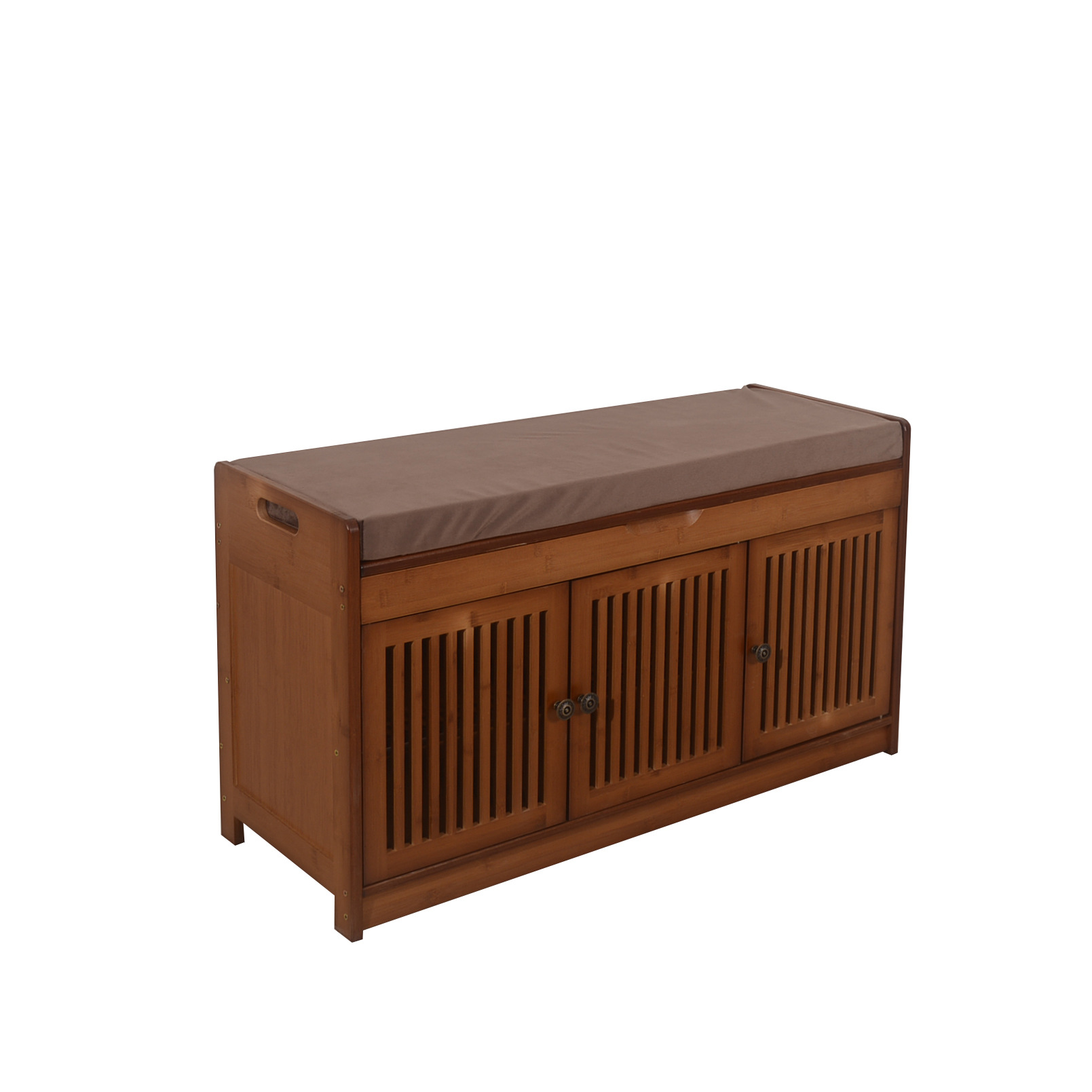 Modern 2-Tier Bamboo Shoe Storage Organizer with Cushion Seat Entryway Rack for Shoe Bench Organizing