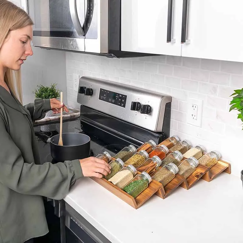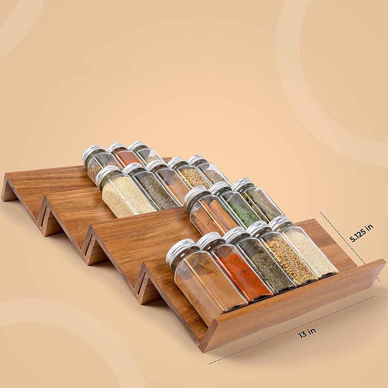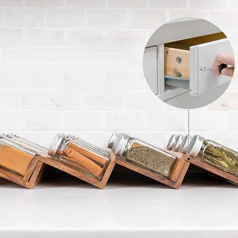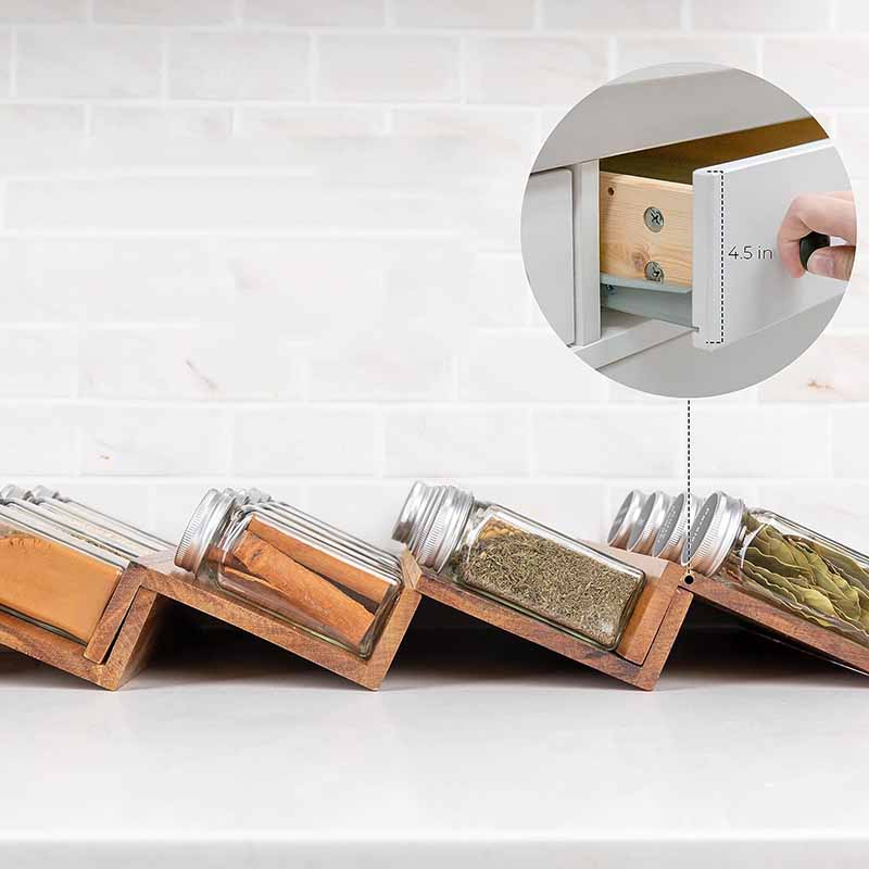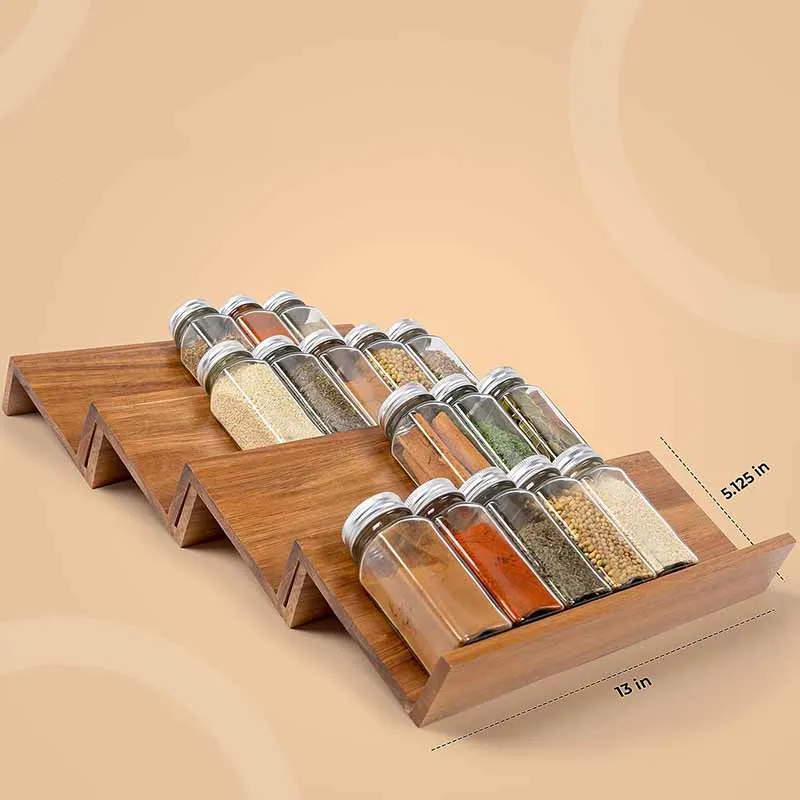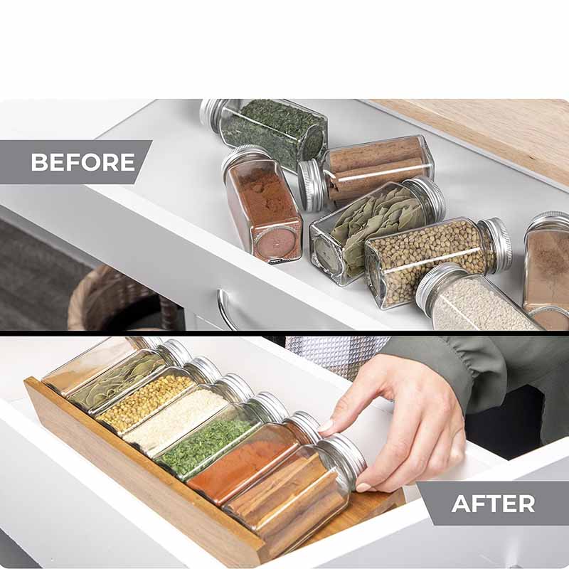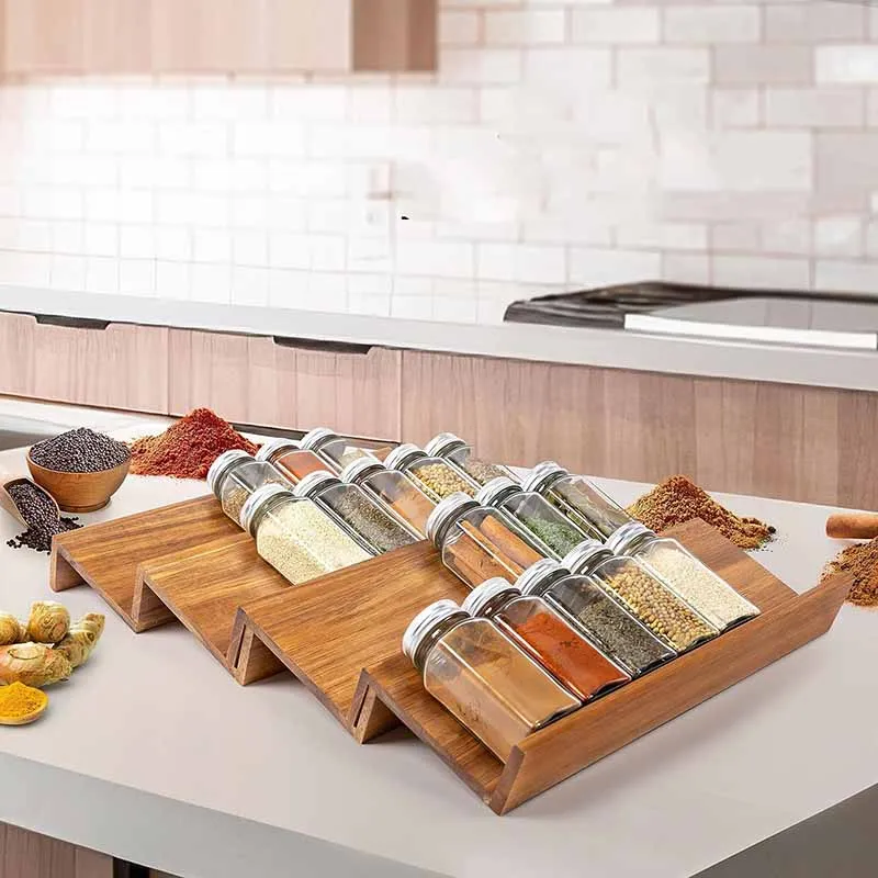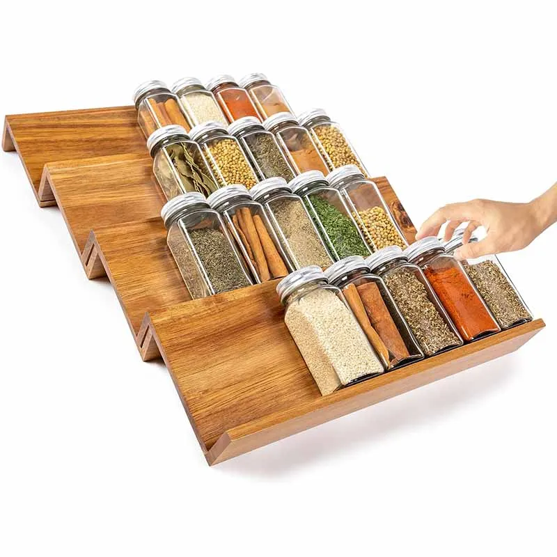 Modern Acacia Wood Spice Drawer Organizer Wooden Rack Storage for Cabinet Drawers Save Space Insert Spice Rack Organizer