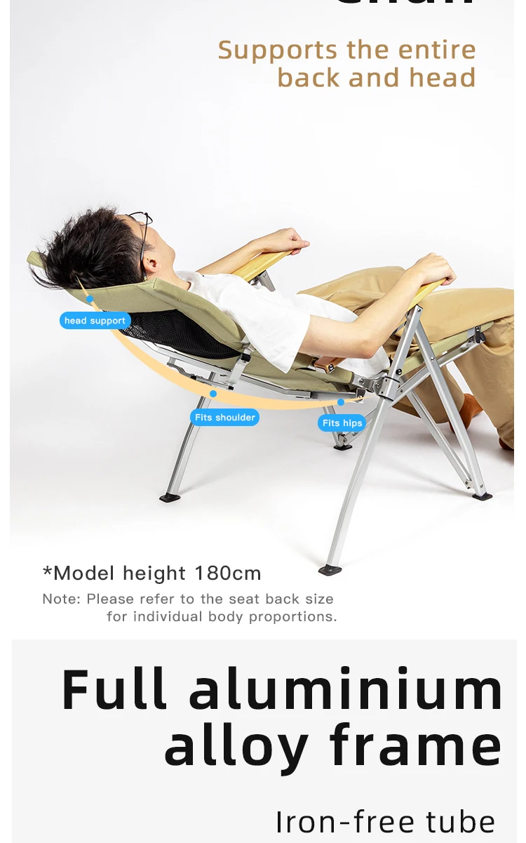 Modern Adjustable Outdoor Portable Aluminum Folding Camping Chair for Beach Picnic Fishing Park Use with Packing Heavy Duty