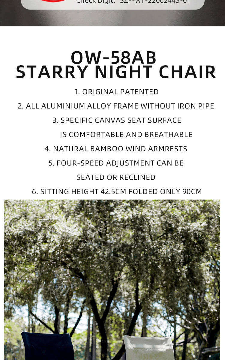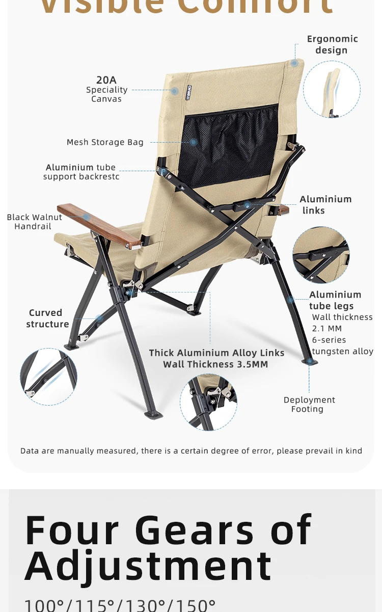 Latest Design Portable Outdoor Adjustable Backrest Multi-position Reclining Folding Camping Chair
